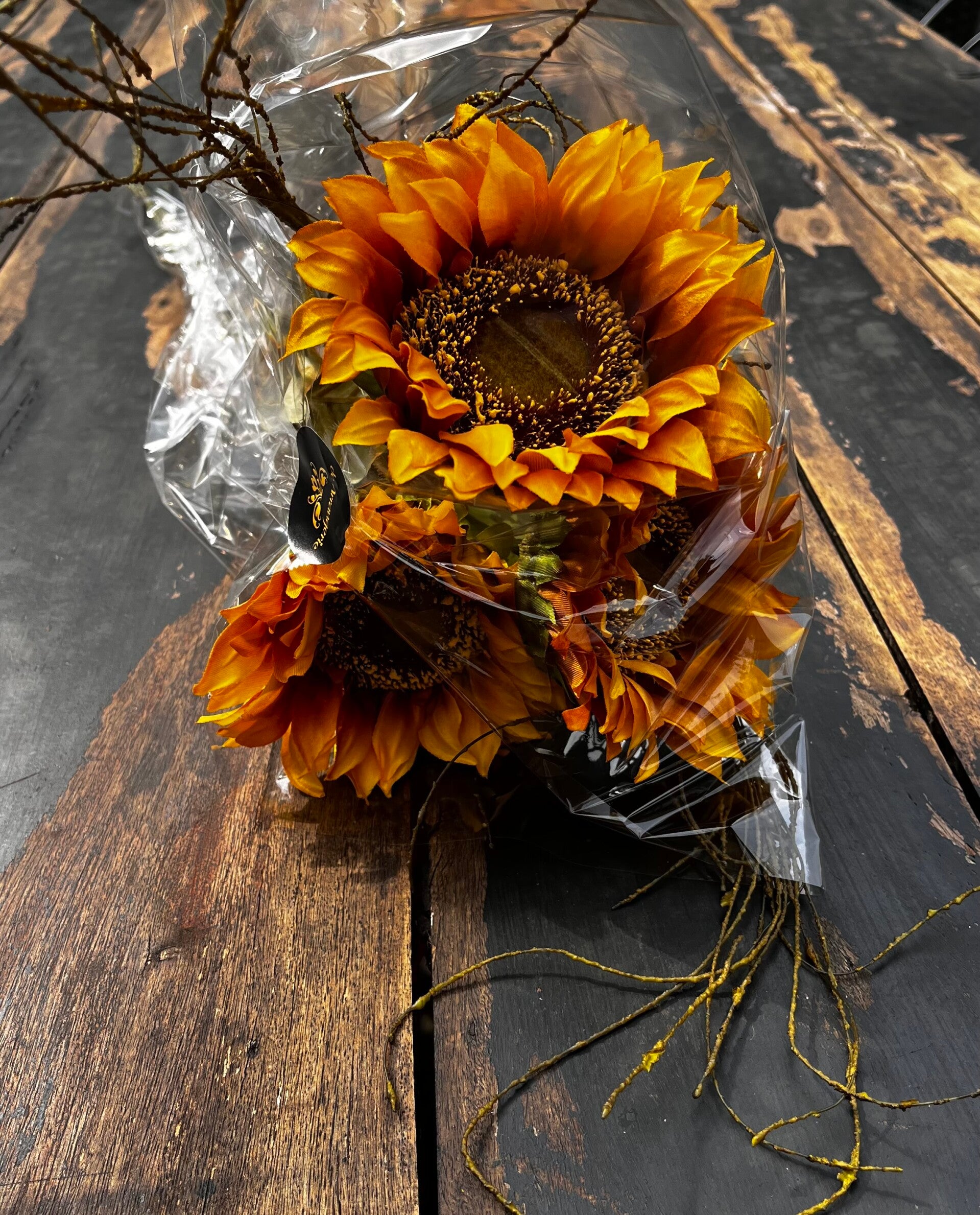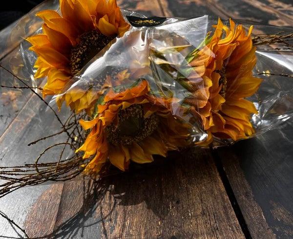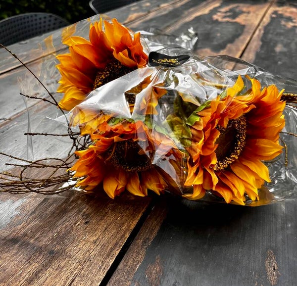 Haal de zon in huis met deze 3 prachtige zonnebloemen van 68cm lang samen met takken.