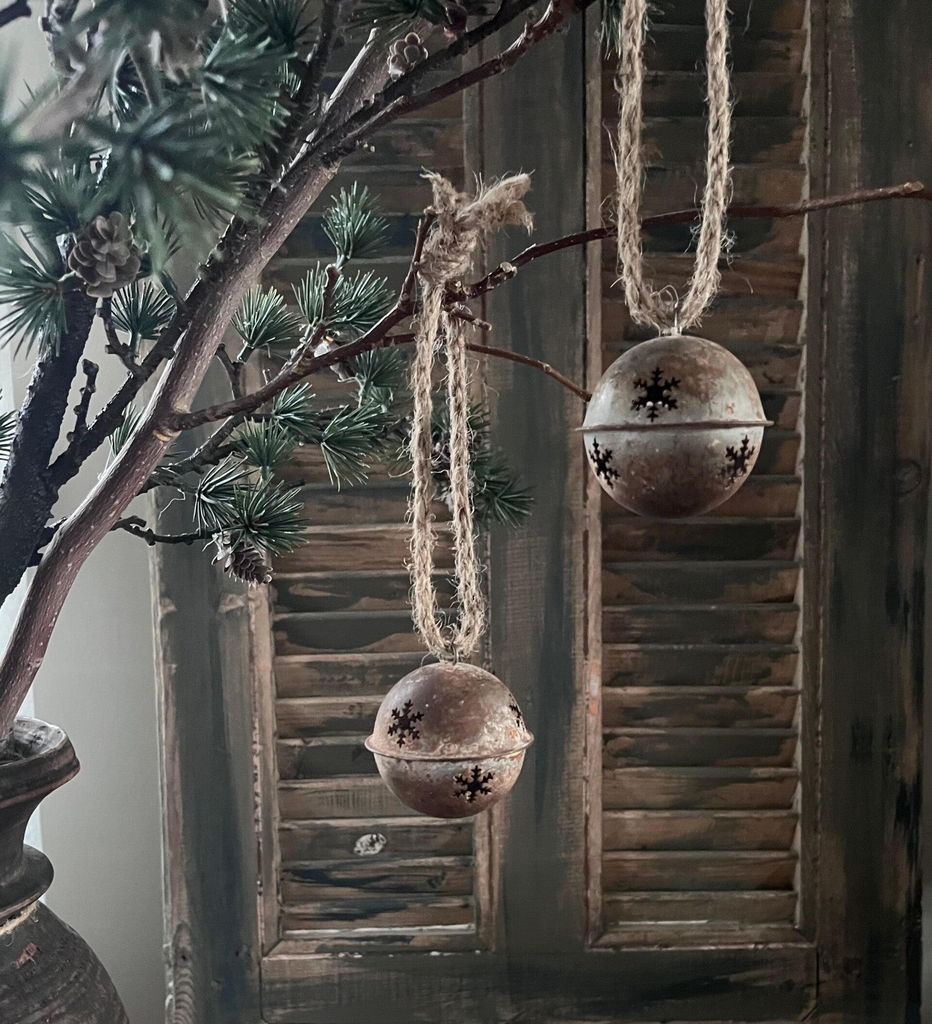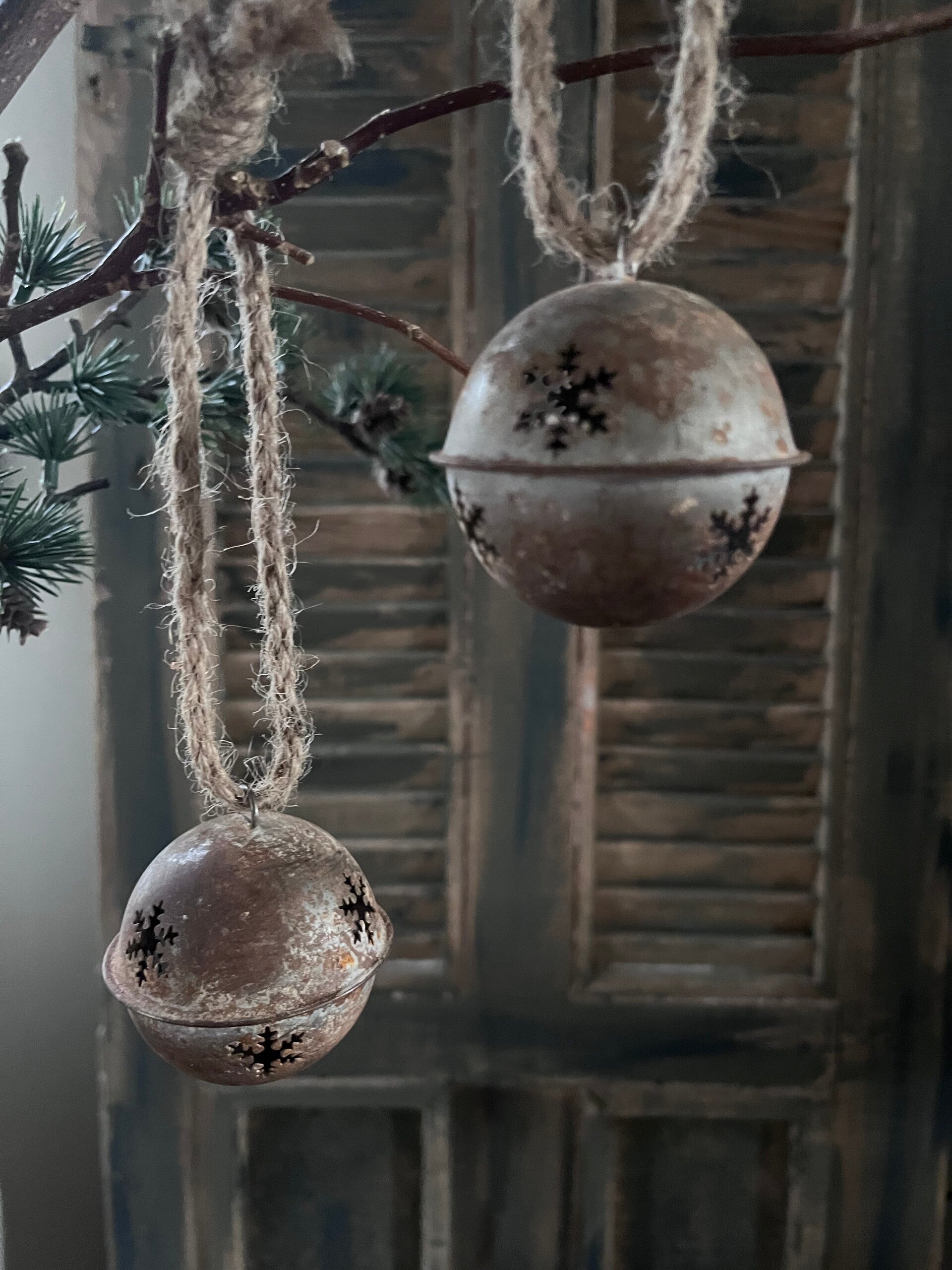 Kerstbal met ijsster roest aan sisal touw S