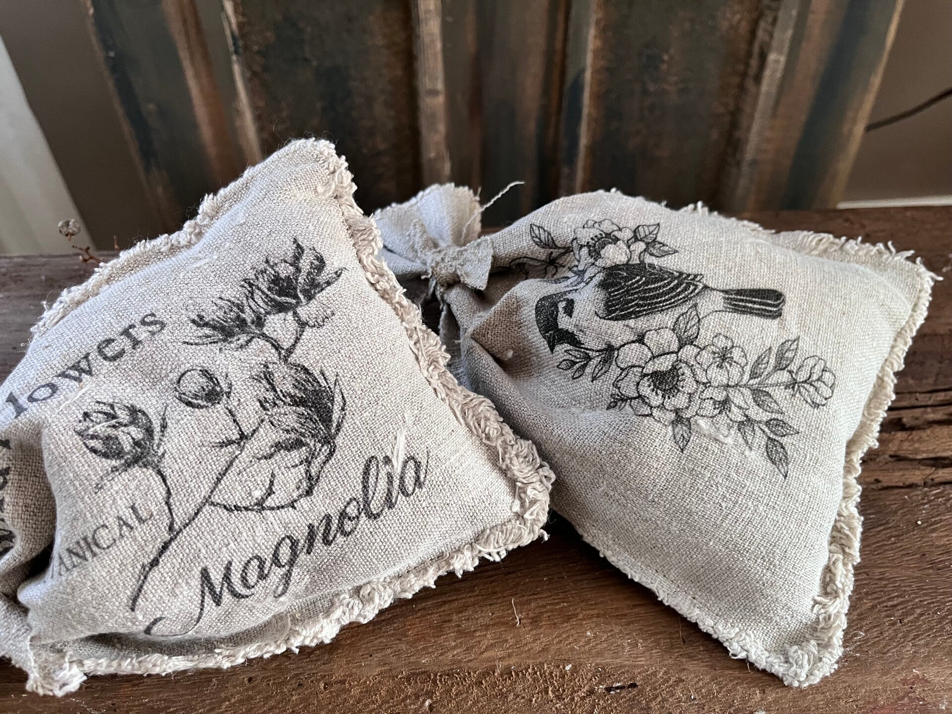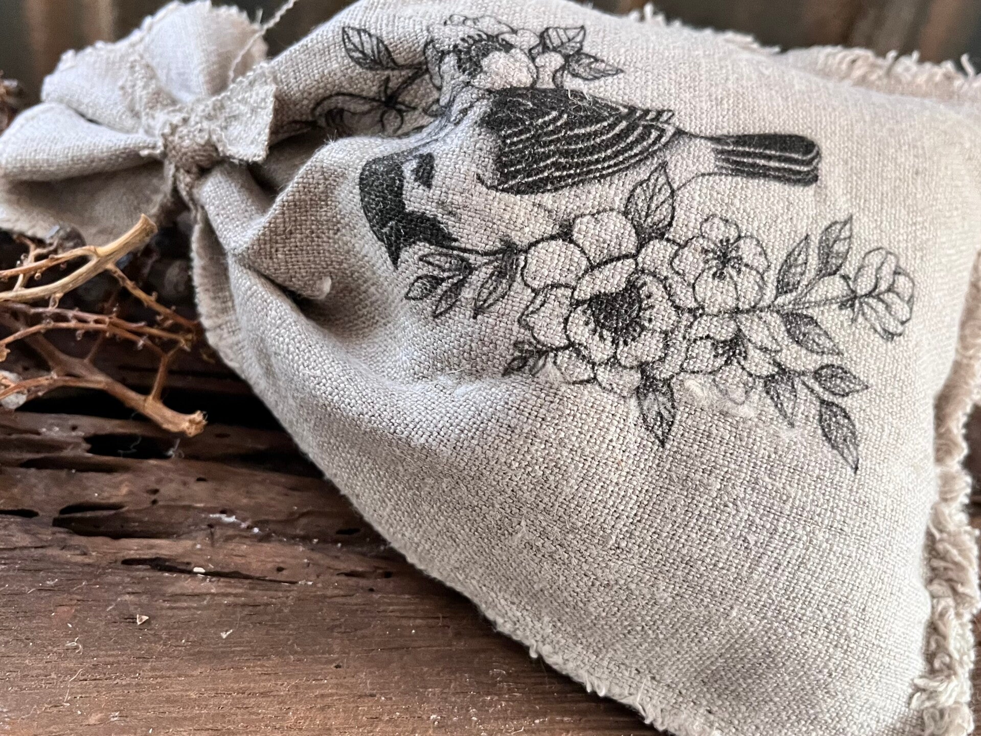 Naturel kleurig linnen geurzakje van ongeveer 20x15cm bedrukt met afbeelding.