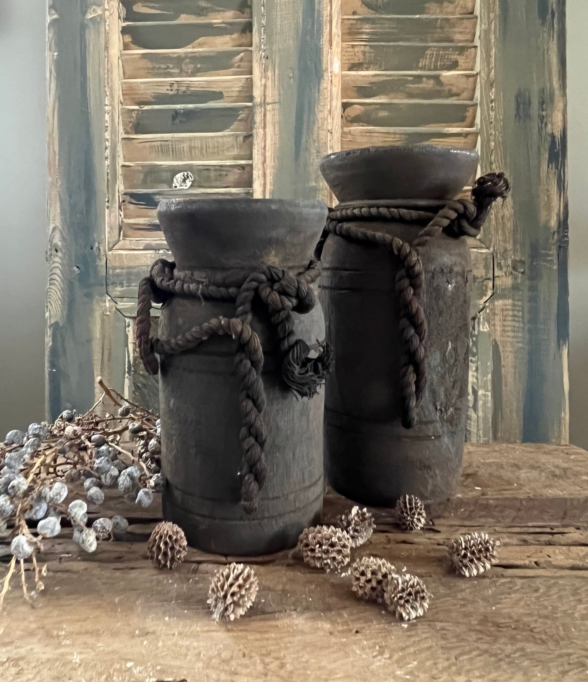 Kleine houten Nepalese potjes