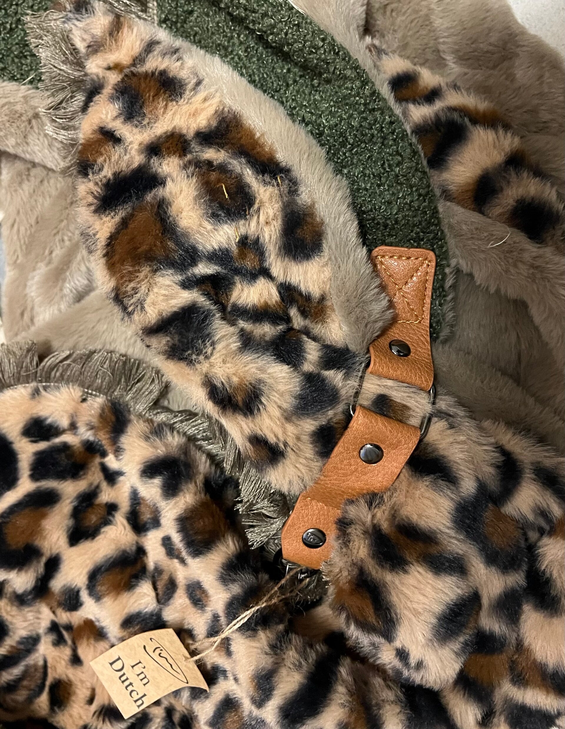 Deze Teddy sjaal is jouw ideale metgezel tijdens guur weer. Wat deze sjaal extra speciaal maakt, is dat hij aan de voorkant is voorzien van twee verschillende materialen. Eén zijde pronkt met een opvallende panterprint, terwijl de andere kant heerlijk effen teddy is. De achterkant is volledig zacht en de sjaal is lekker dik voor ultieme warmte en knusheid.