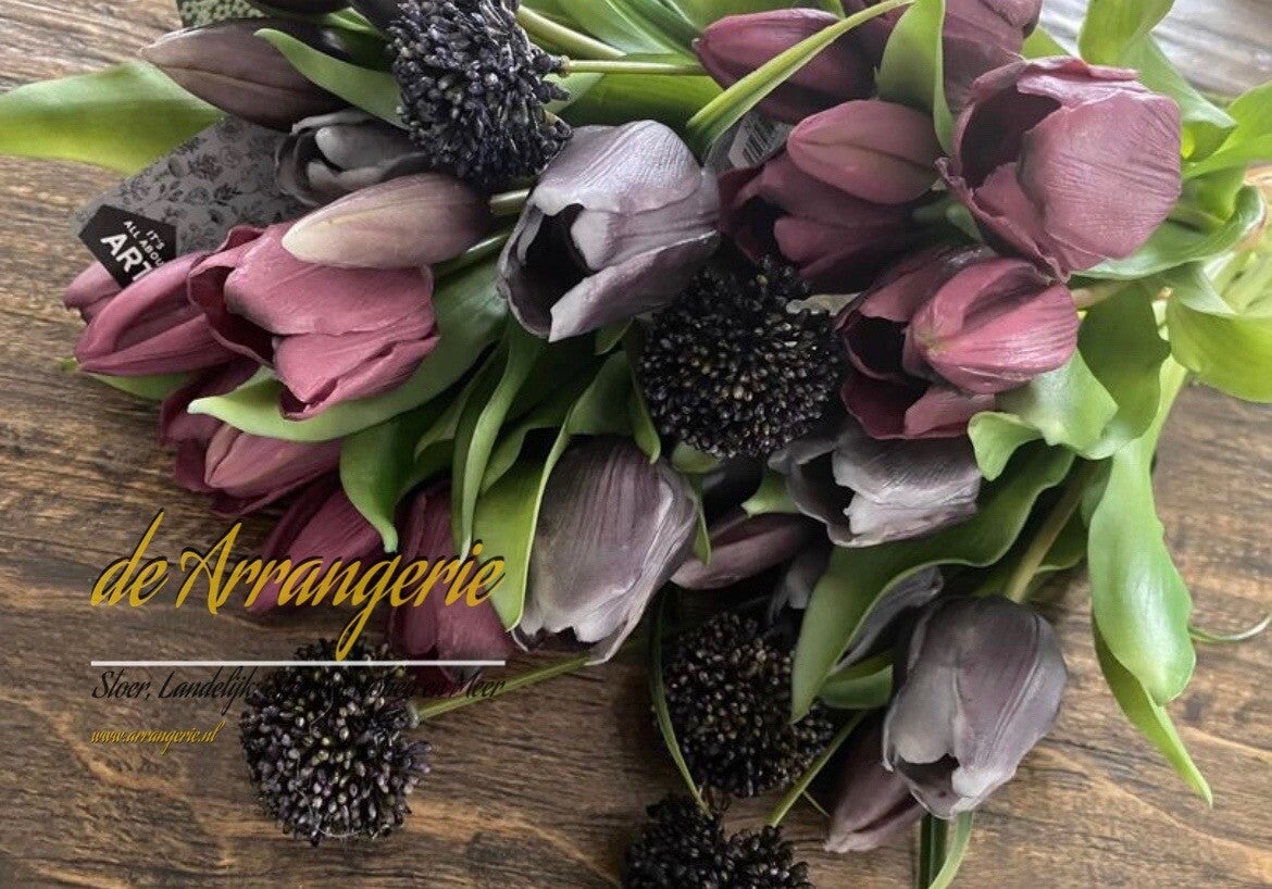 heel mooi te combineren met de Purple grey tulpen en zwarte alium bollen
