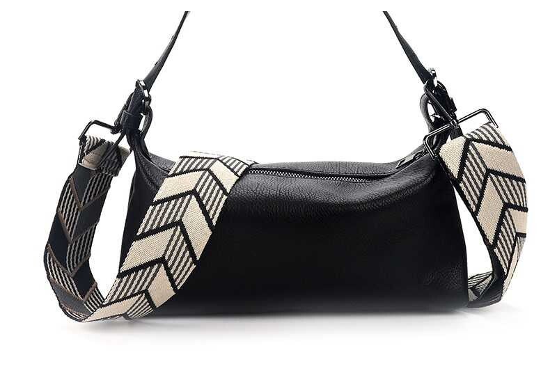 Deze fijne tas wordt geleverd met twee verstelbare schouderbanden. Een stijlvolle bag-strap / geweven schouderband en een effen schouderband.
