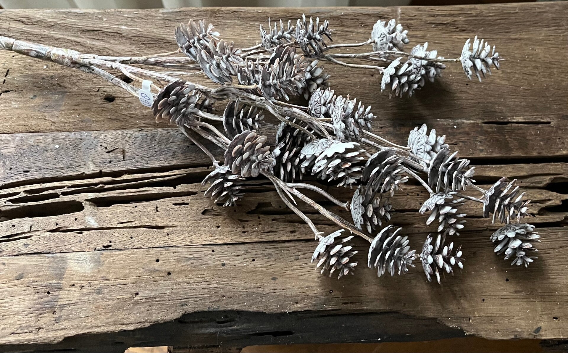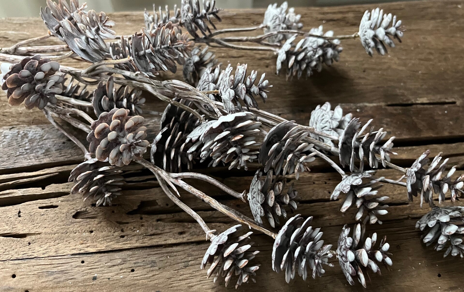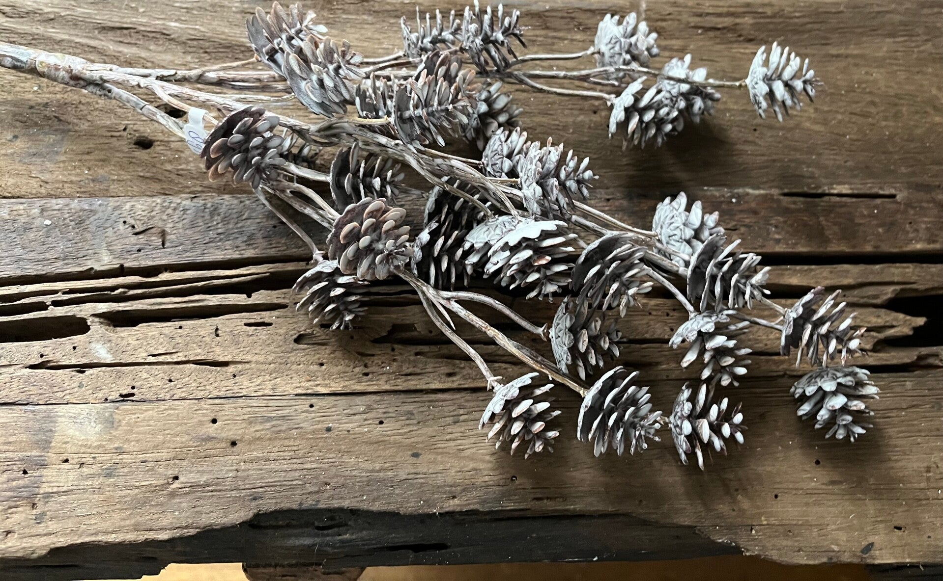Vergrijsd takje met dennenappeltjes