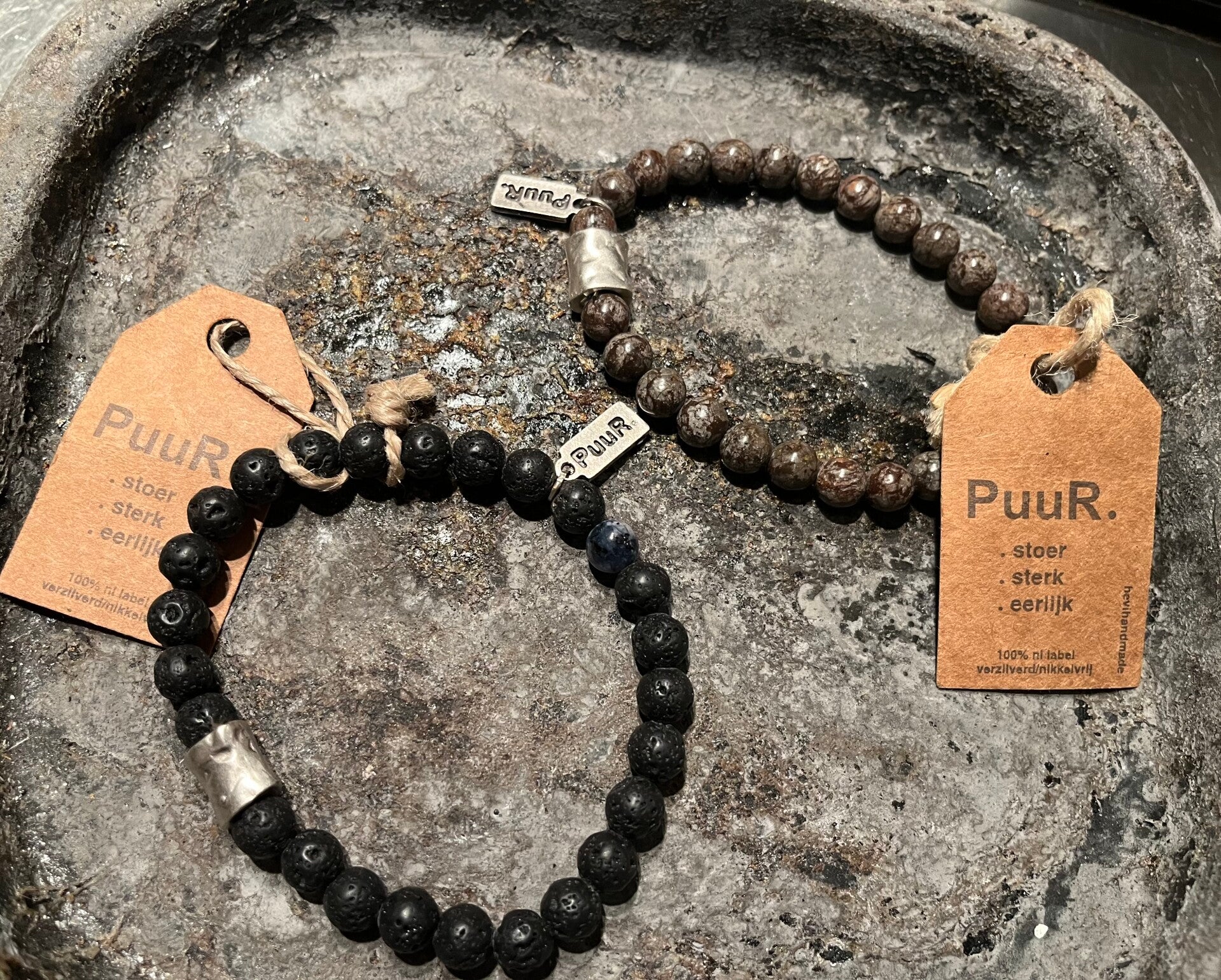 Deze stoere armbanden met halfedelstenen worden met de hand gemaakt en kunnen zowel door heren als dames gedragen worden.