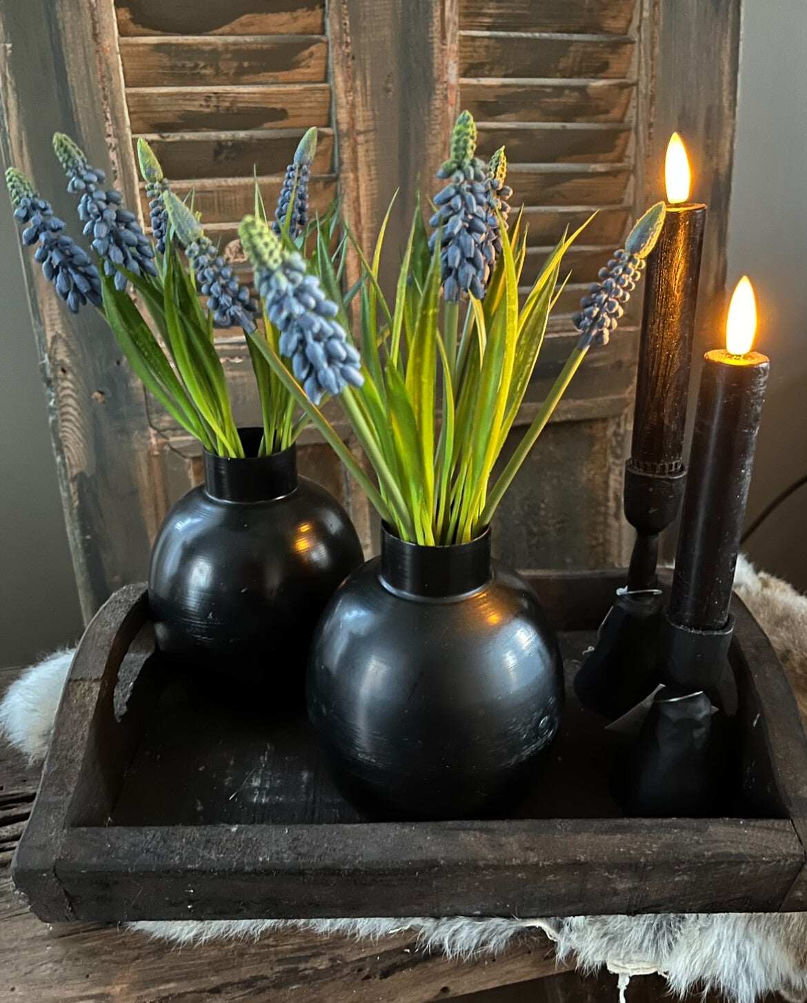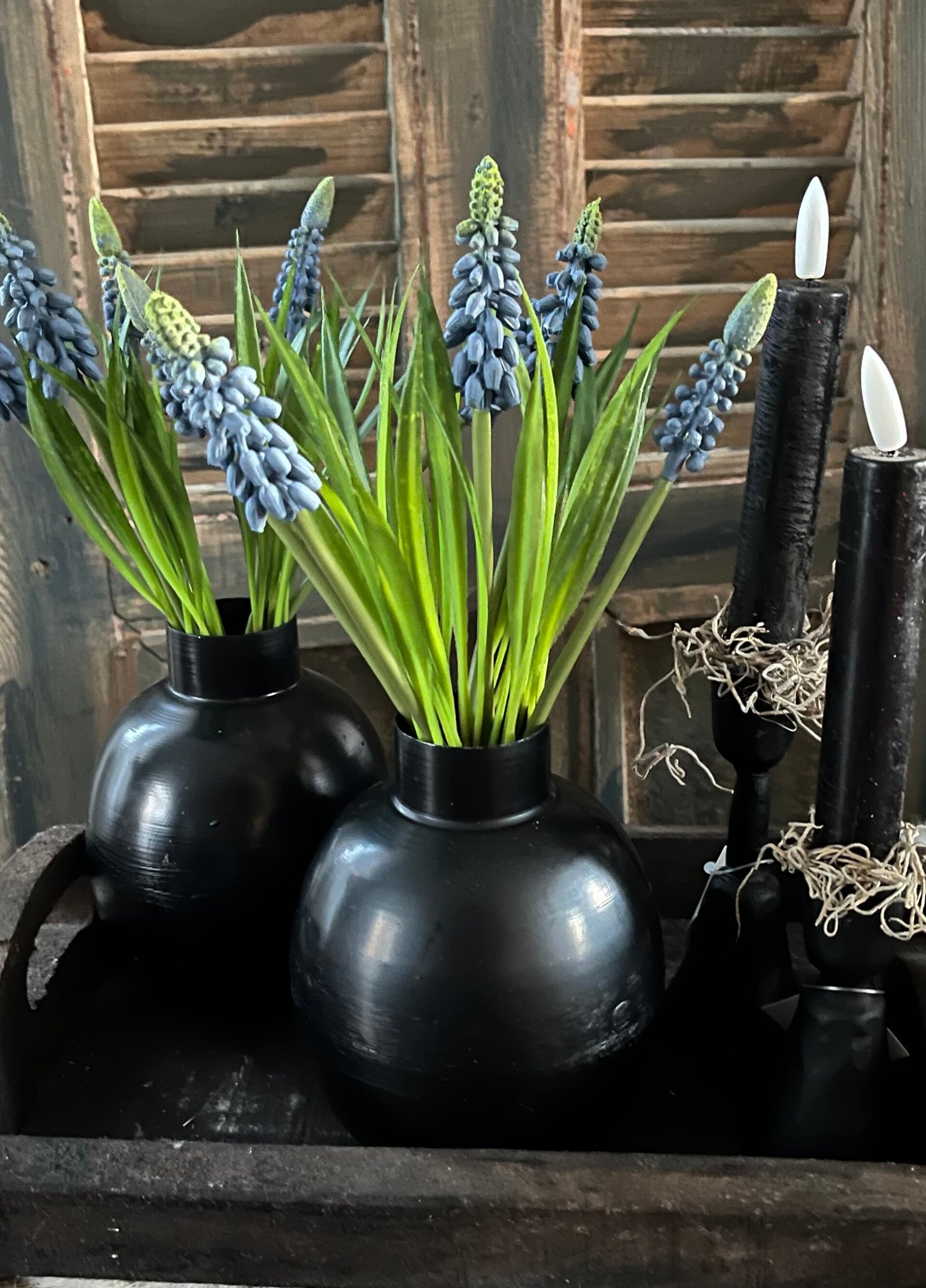- 2 zwarte stalen vaasjes H13cm