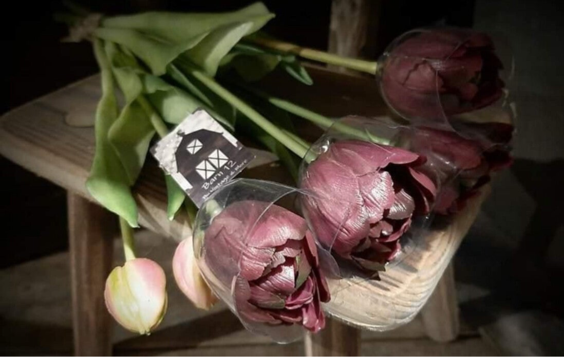 Tulpen, dubbel, 7 stelen, 44cm - dark purple