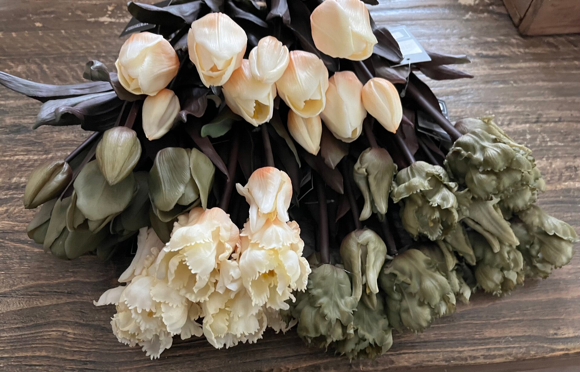 Bosje van 5 Parrot tulpen in off white