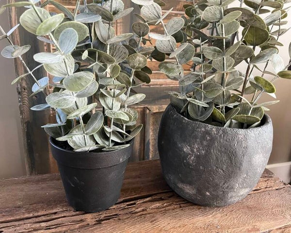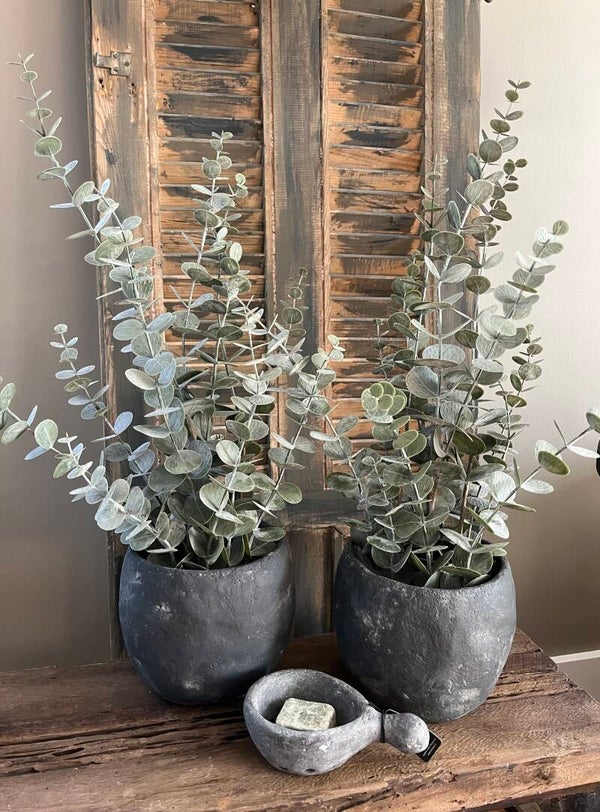 Staat in zijn geheel in een mooie sobere pot in vintage grey 15x15 cm