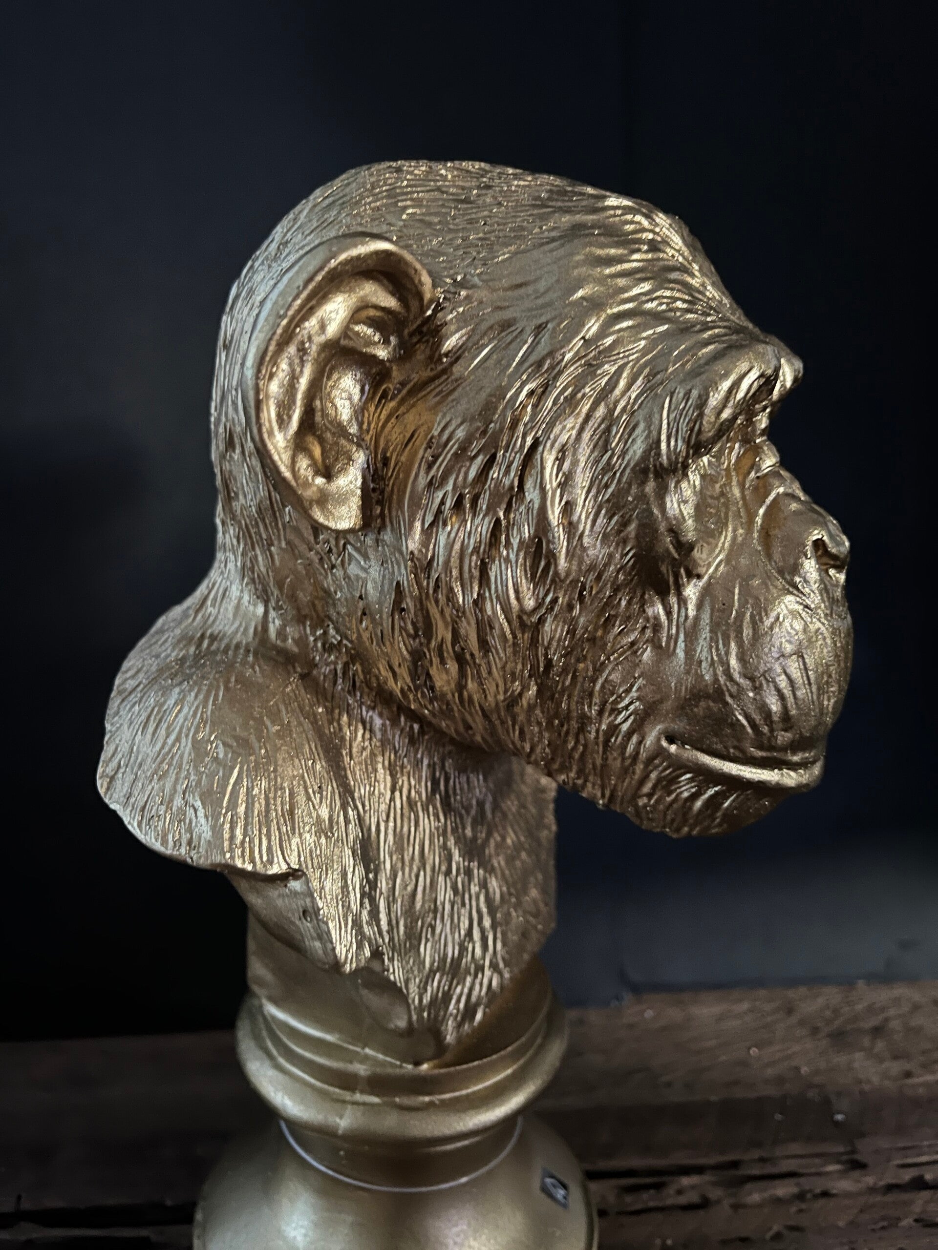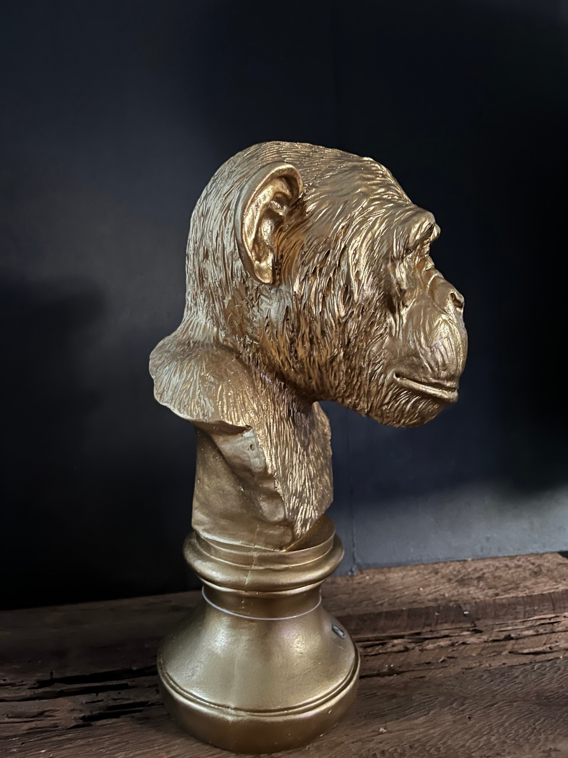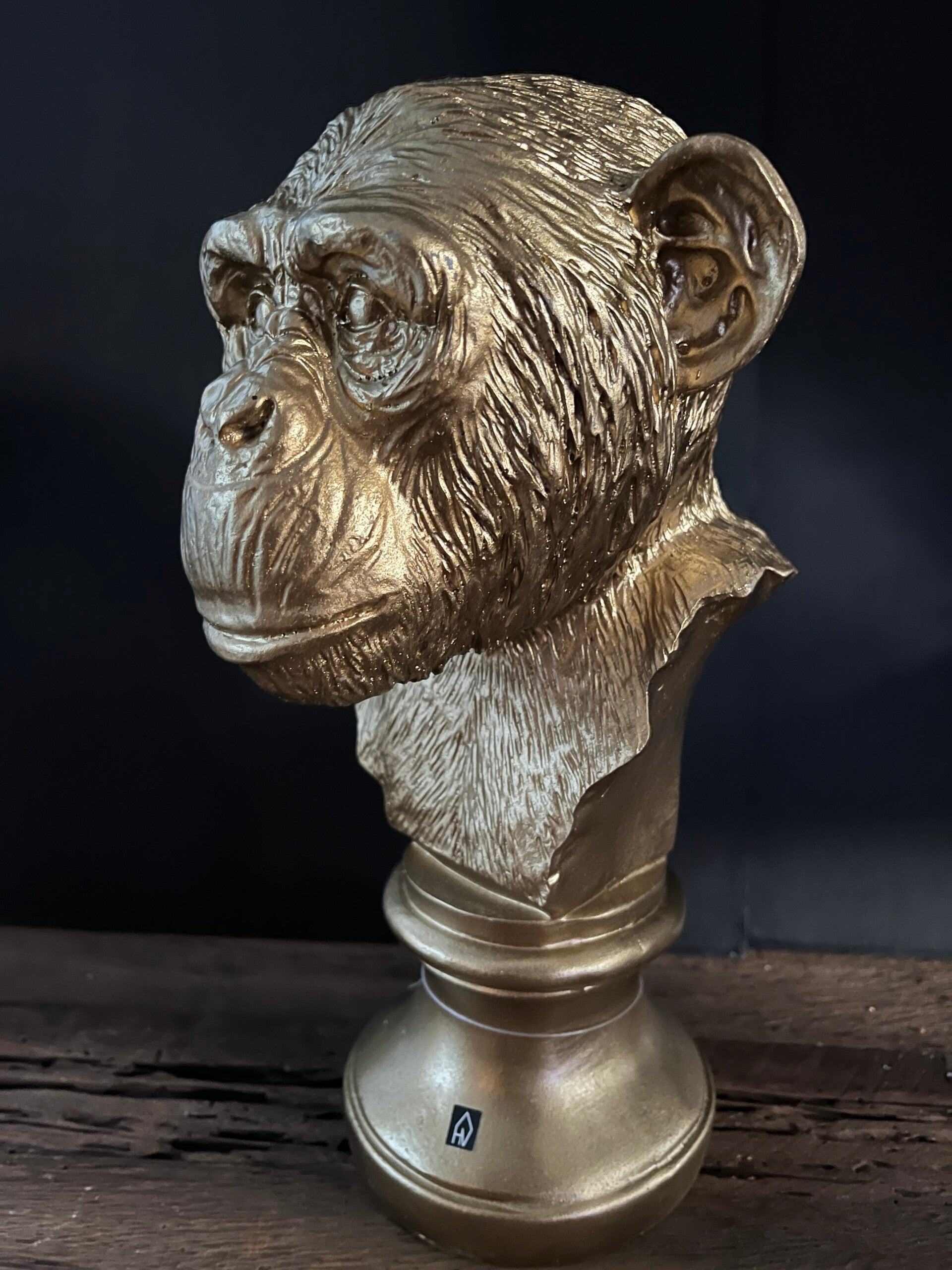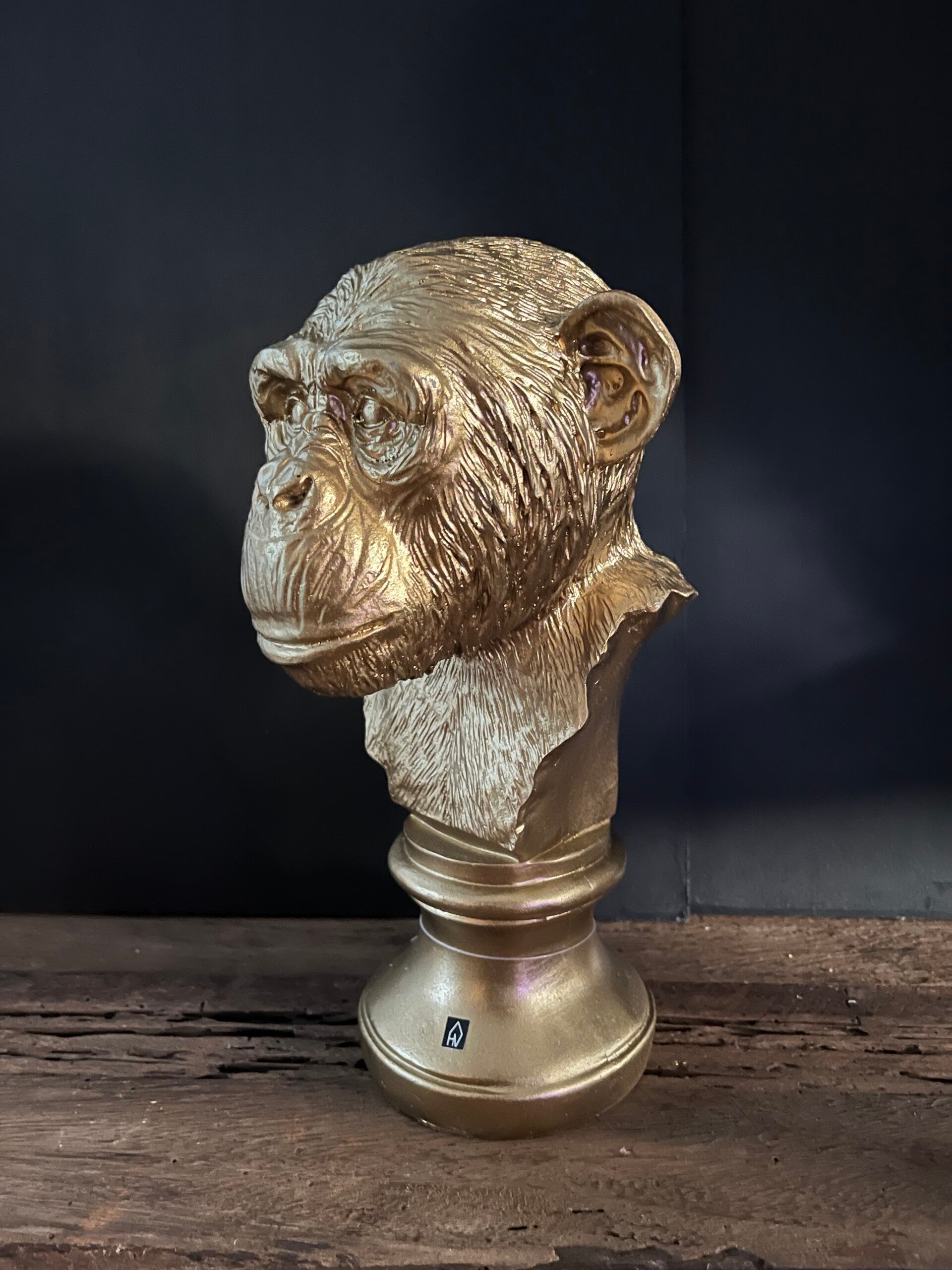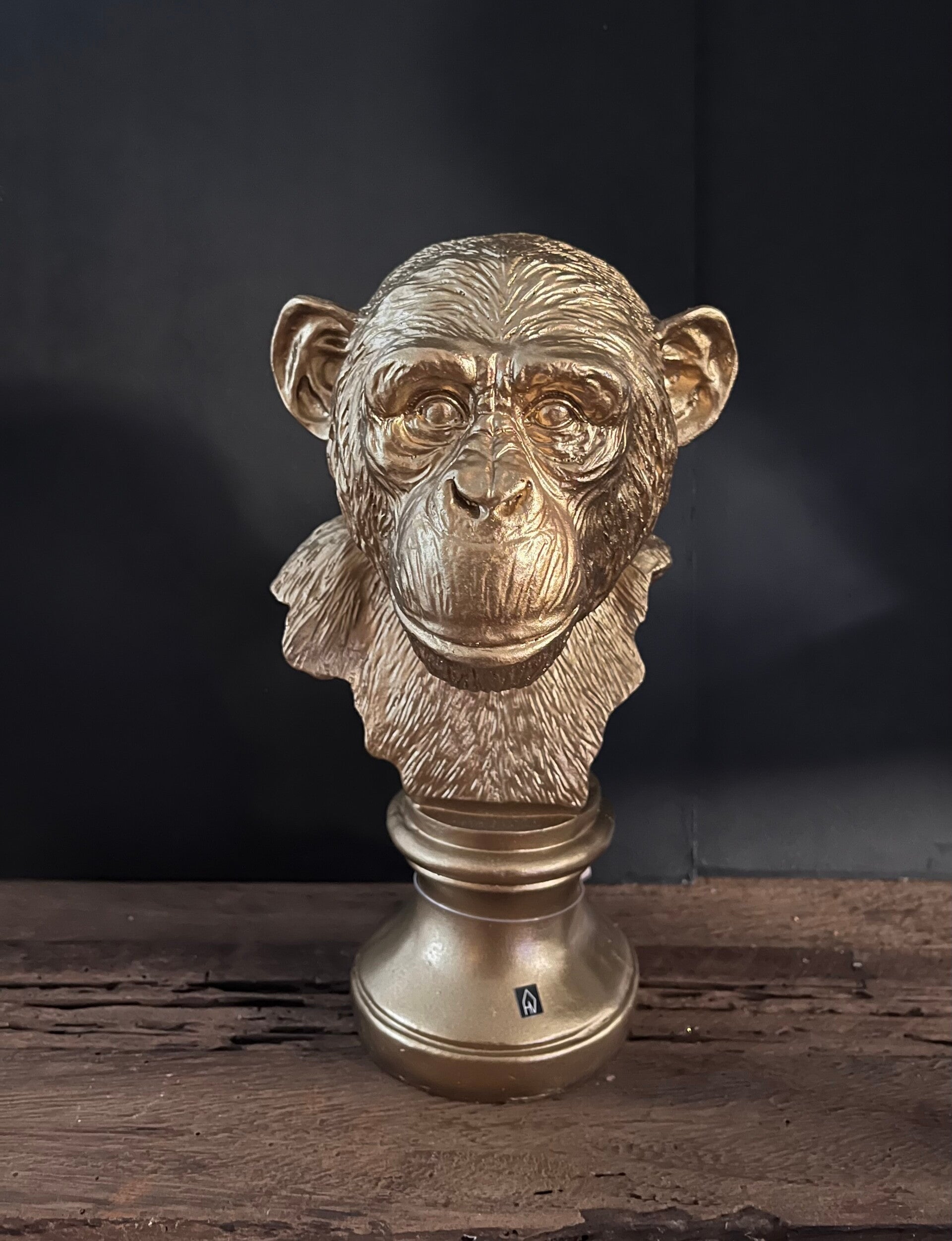 AIN'T NO MONKEY BUSINESS - Deze gouden apenkop wil jou alleen maar aan het lachen maken. Geef hem de spotlight en ga lekker samen lachen.