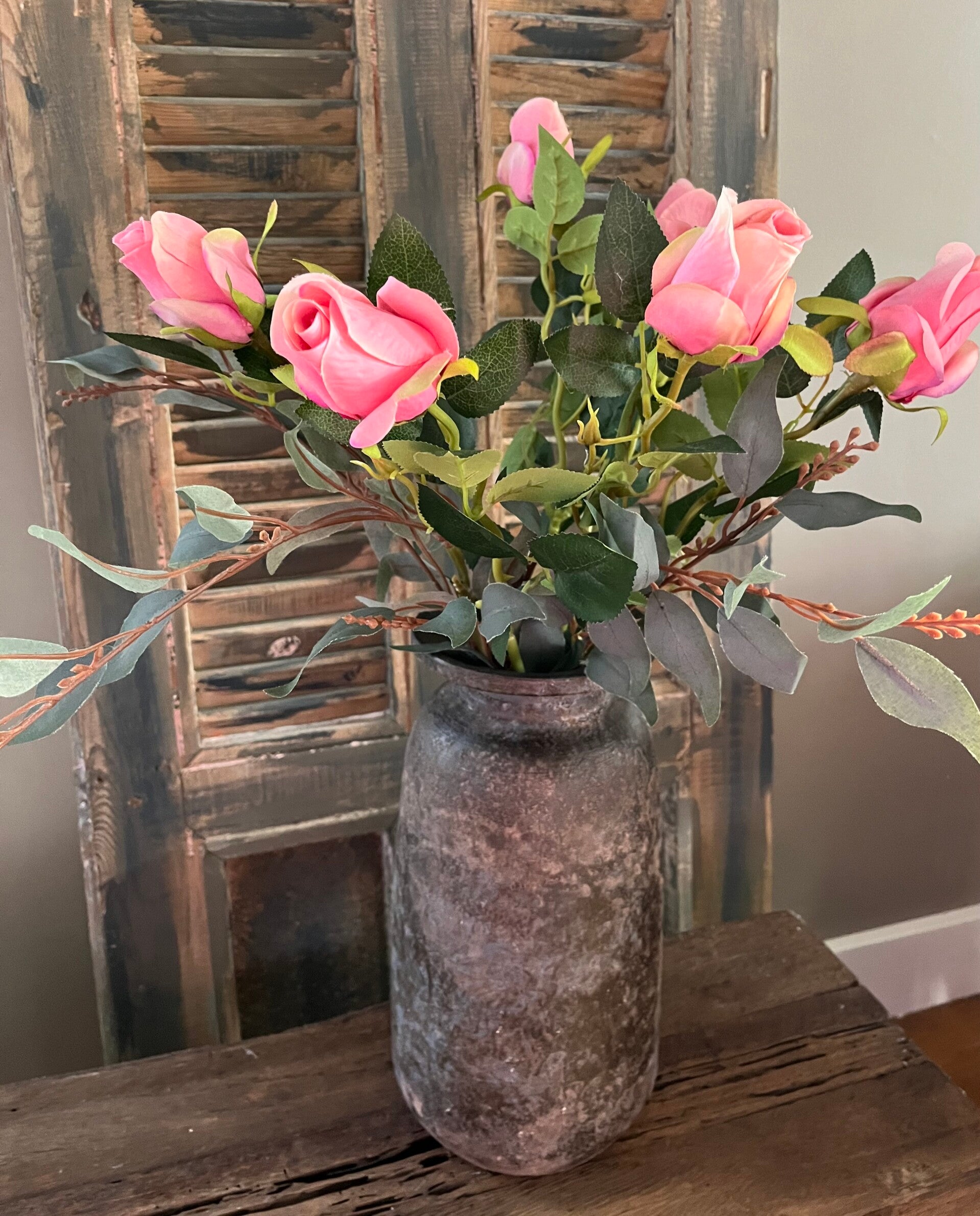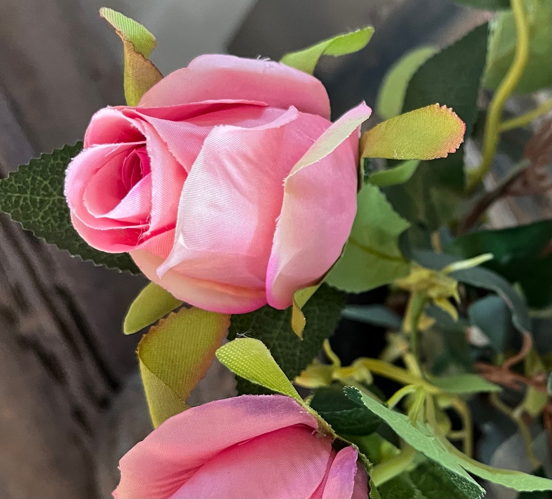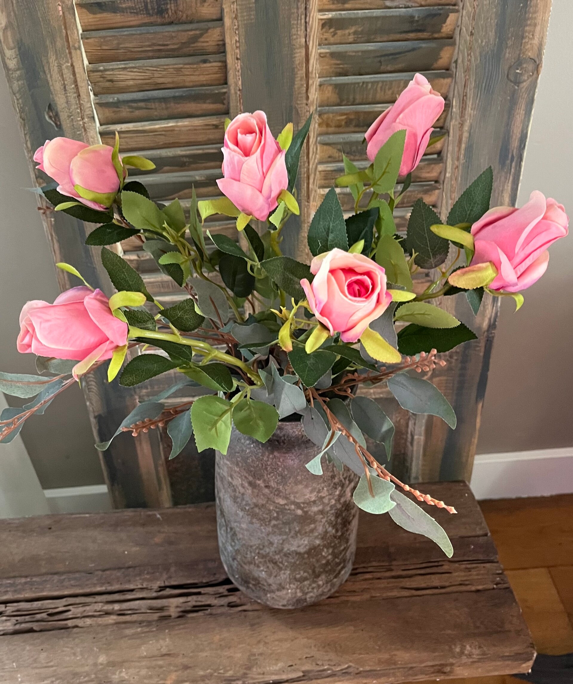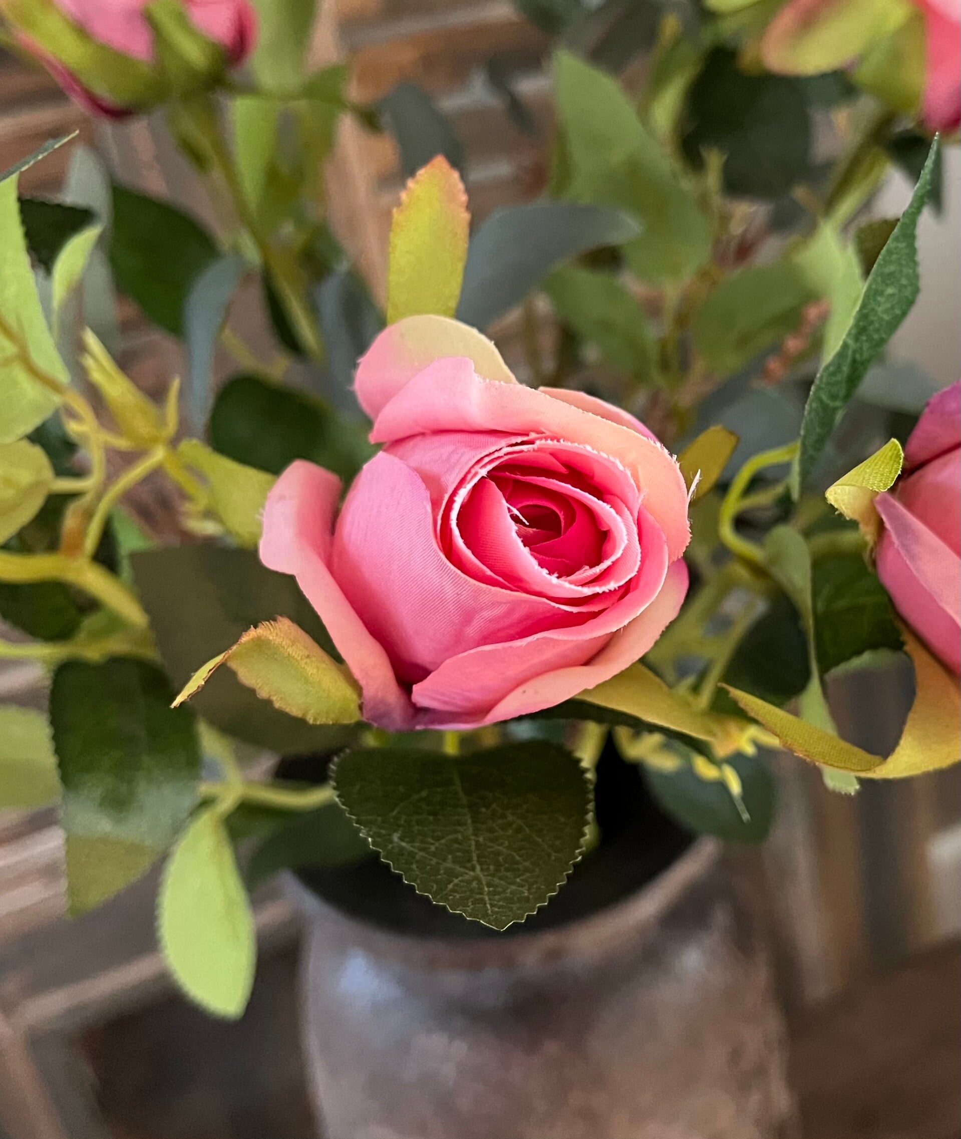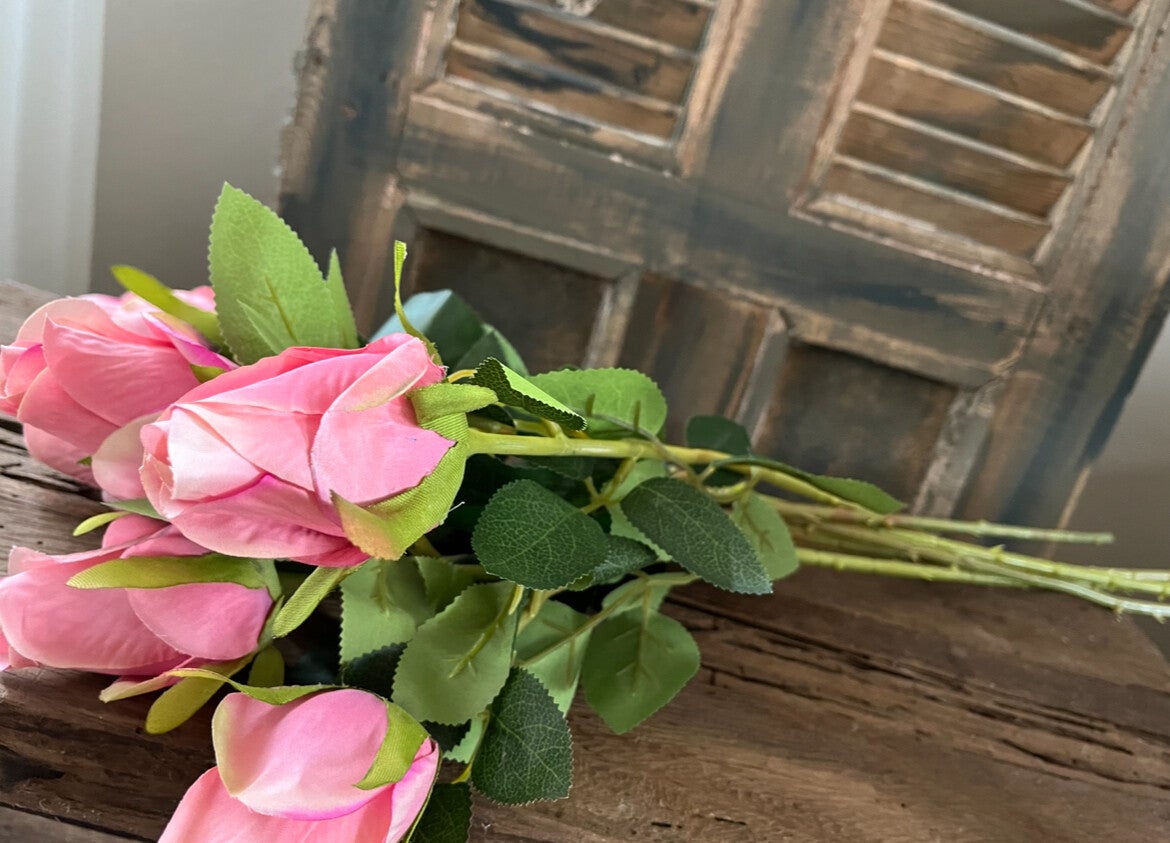 met bos 6 roze rozen (kunst) €18,50