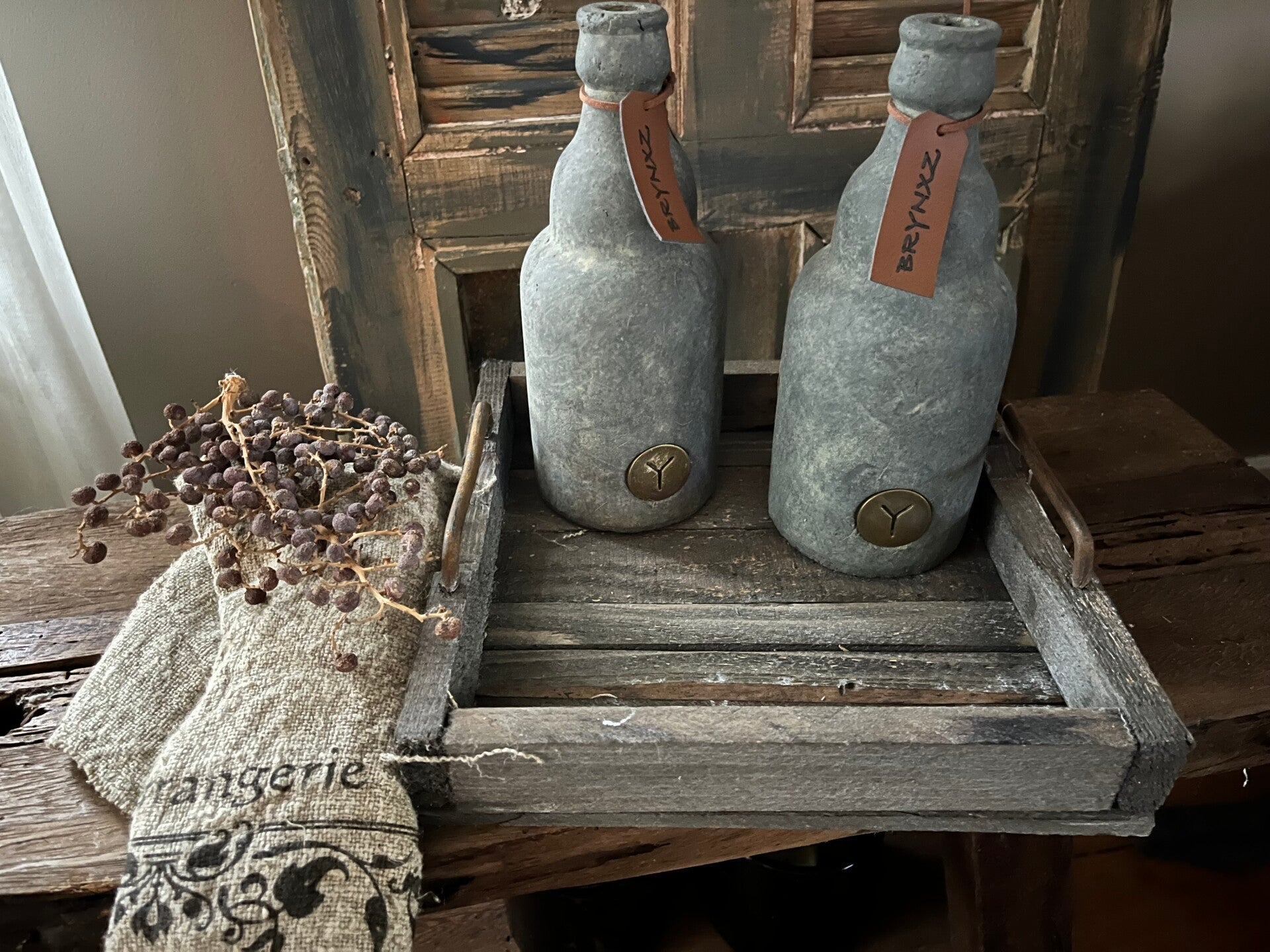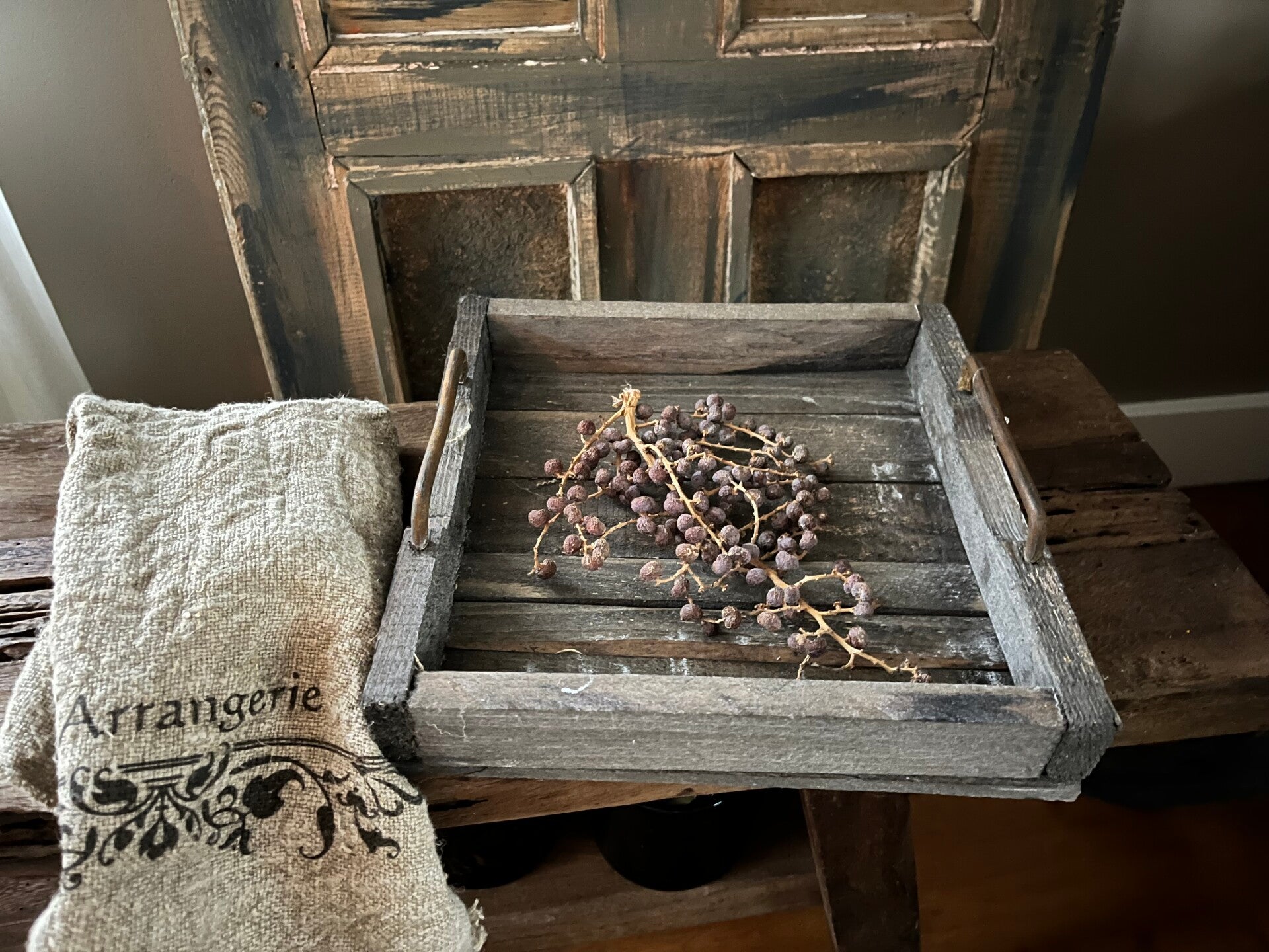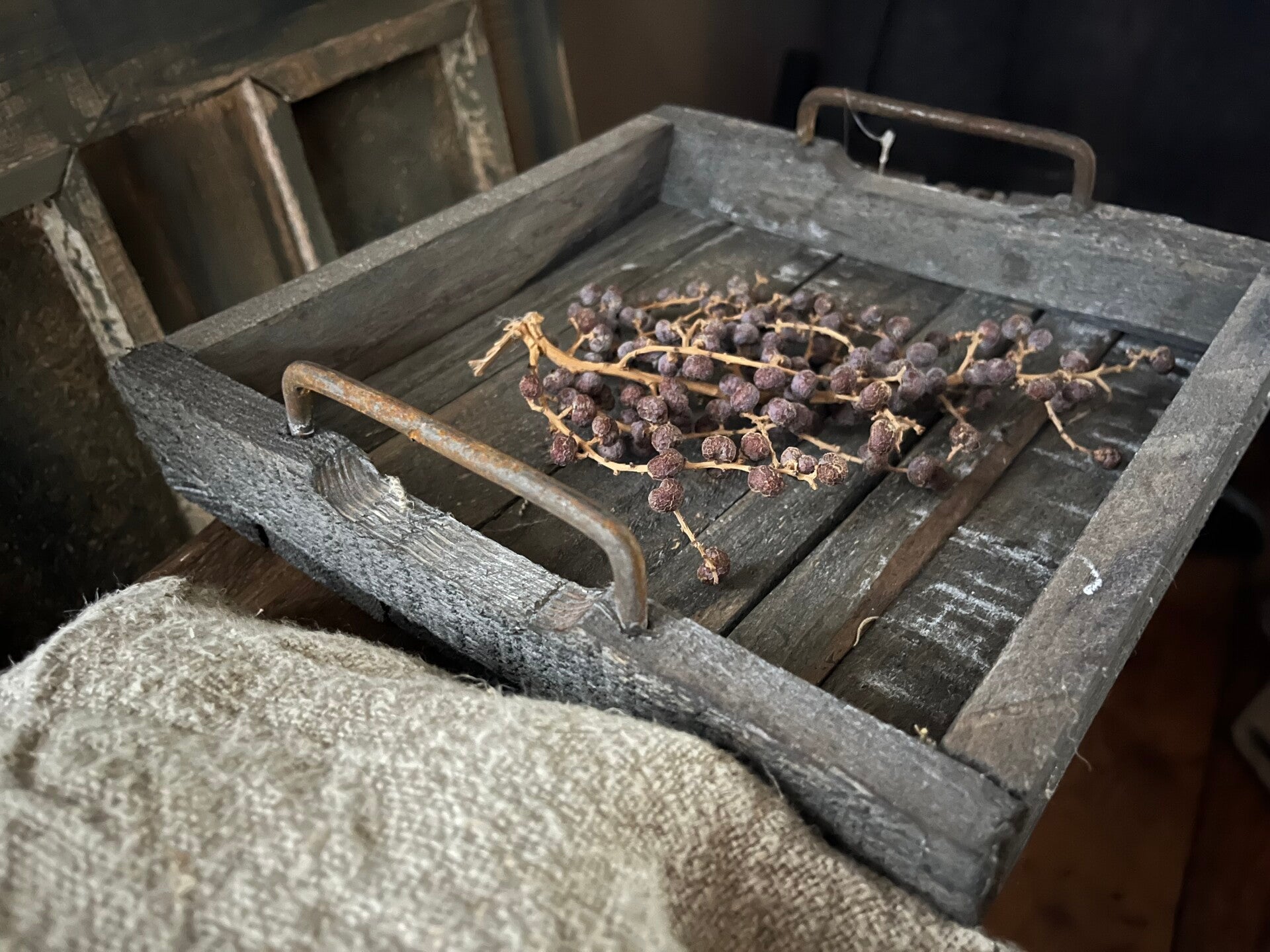 Robuust houten tray met ijzeren grepen