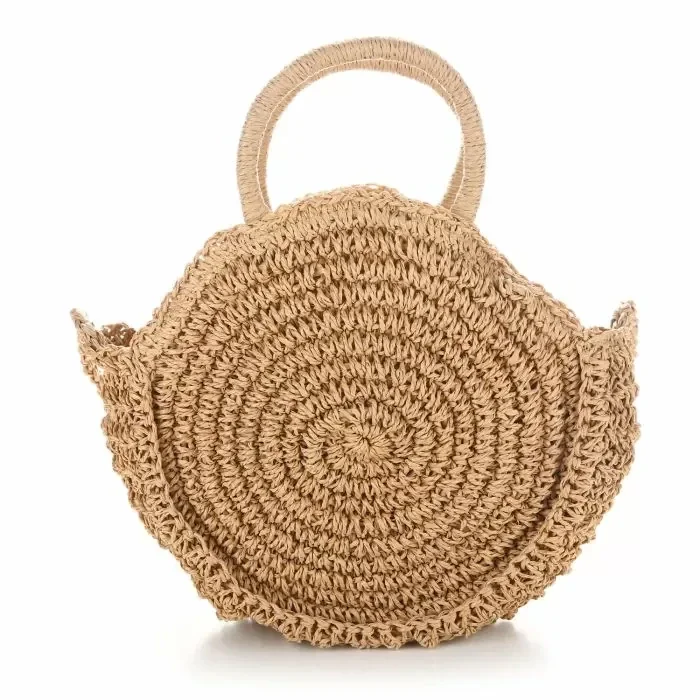 Ronde gevlochten boho/ibiza stijl tas - zand
