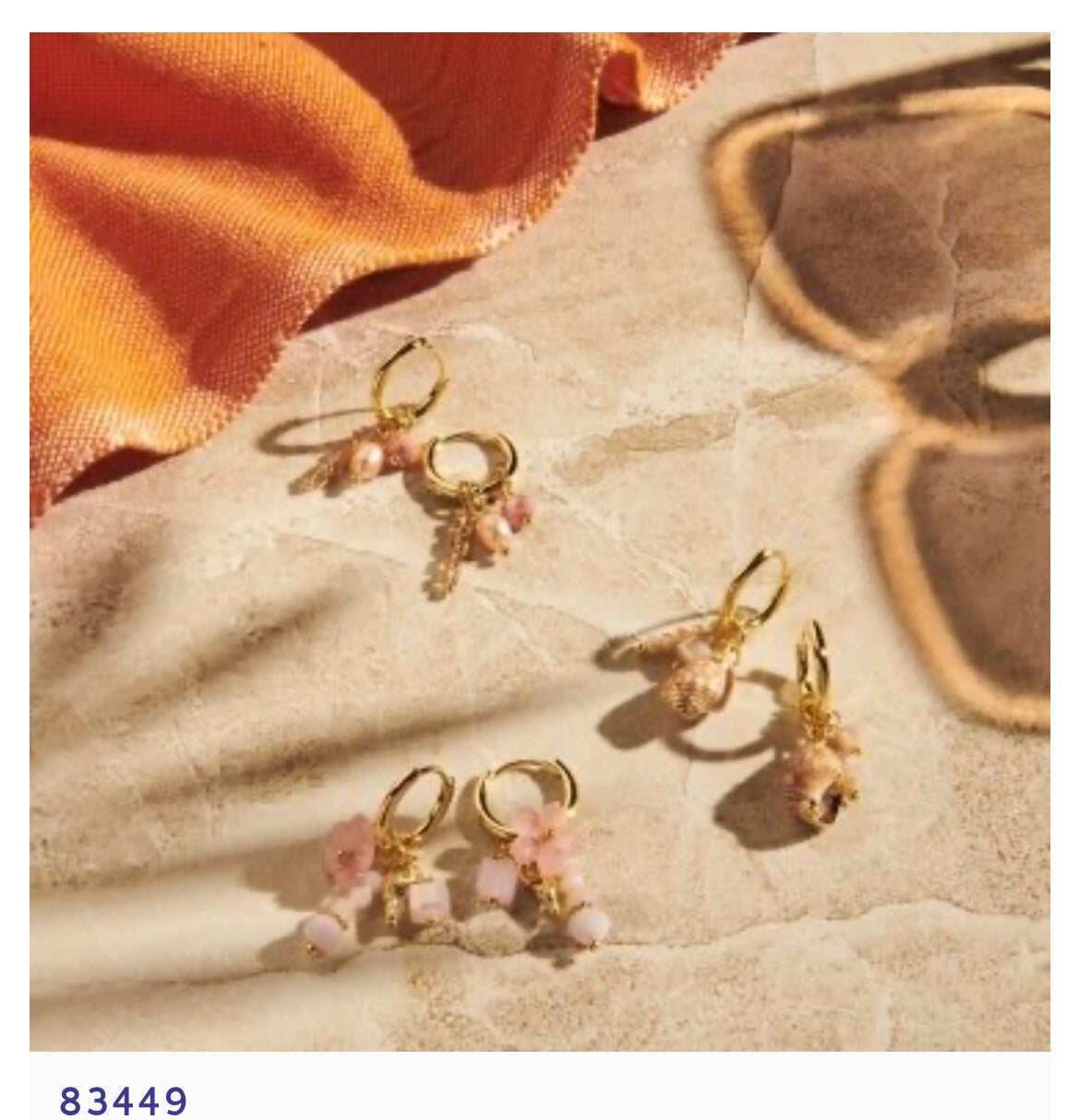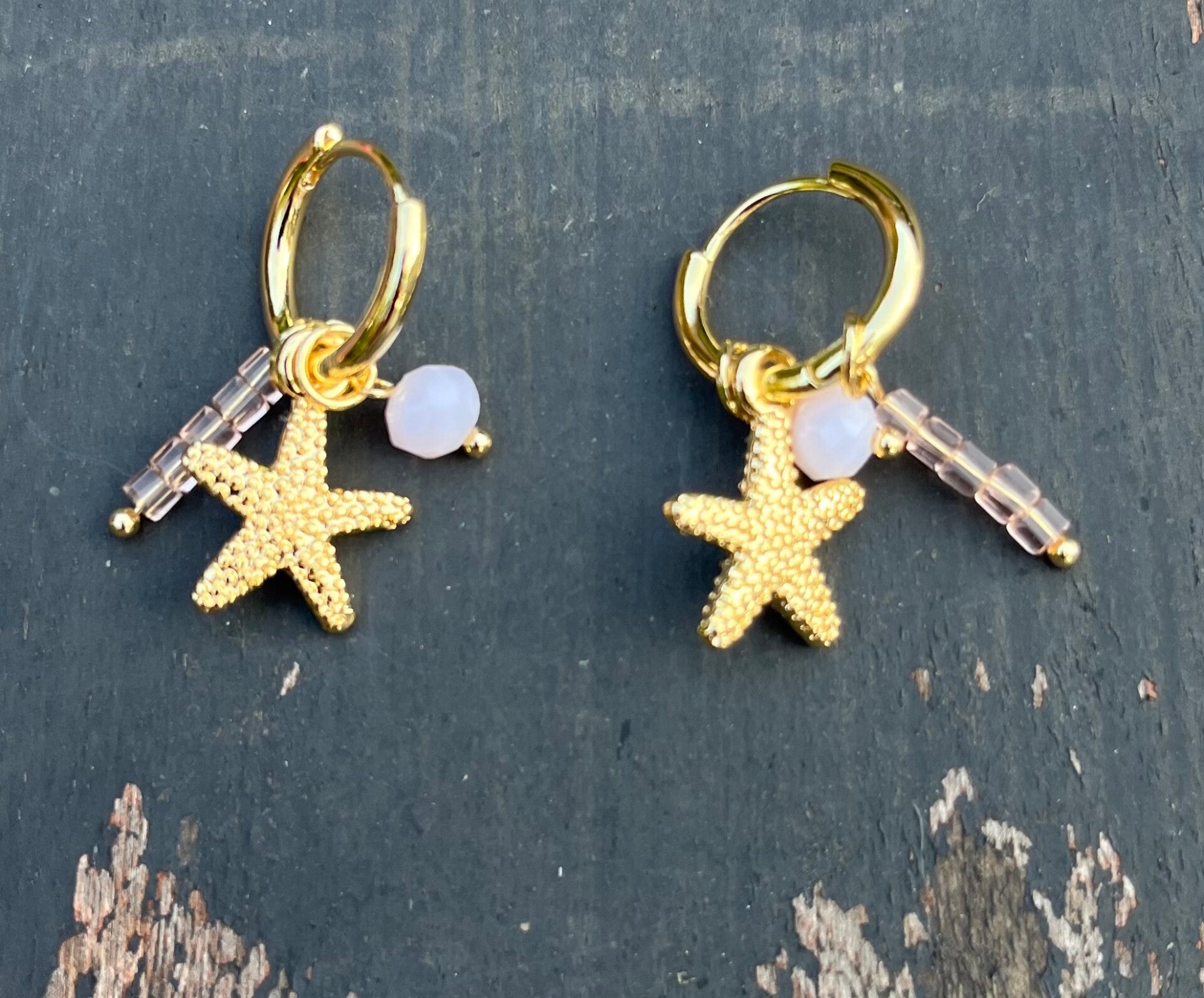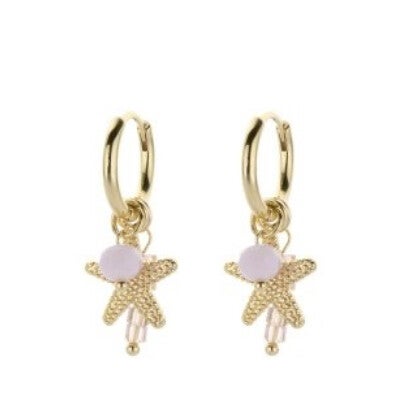 BIBA creolen met beach bedels - roze/wit