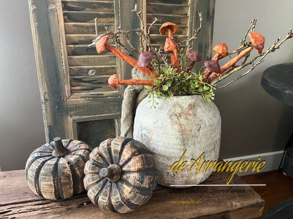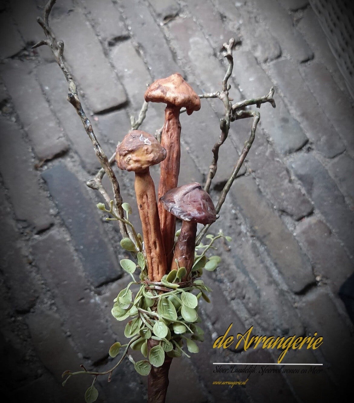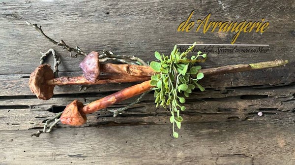 met 3 paddenstoeltjes, bruine takjes en groene takjes