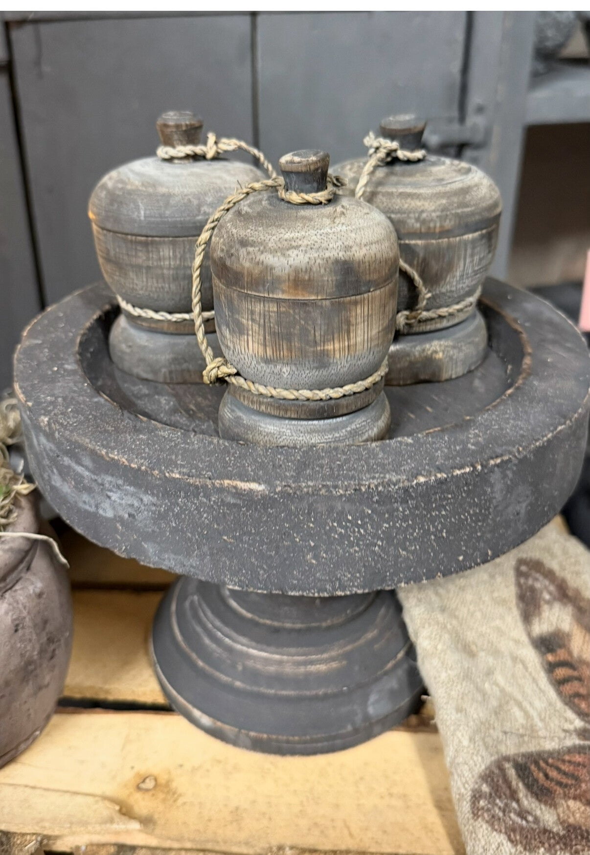 leuk op plateau op voet Rond houten plateau op voet - bruin