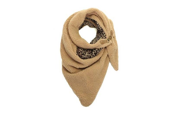 Deze driehoekige sjaal is volledig omhuld met heerlijk zacht teddy-materiaal aan zowel de voor- als achterkant, waardoor je verzekerd bent van een ongeëvenaard gevoel van warmte en comfort.