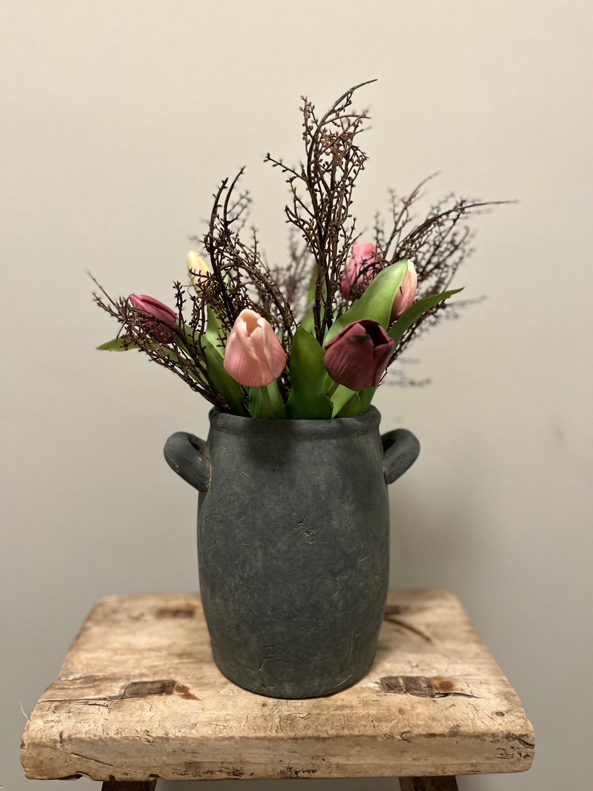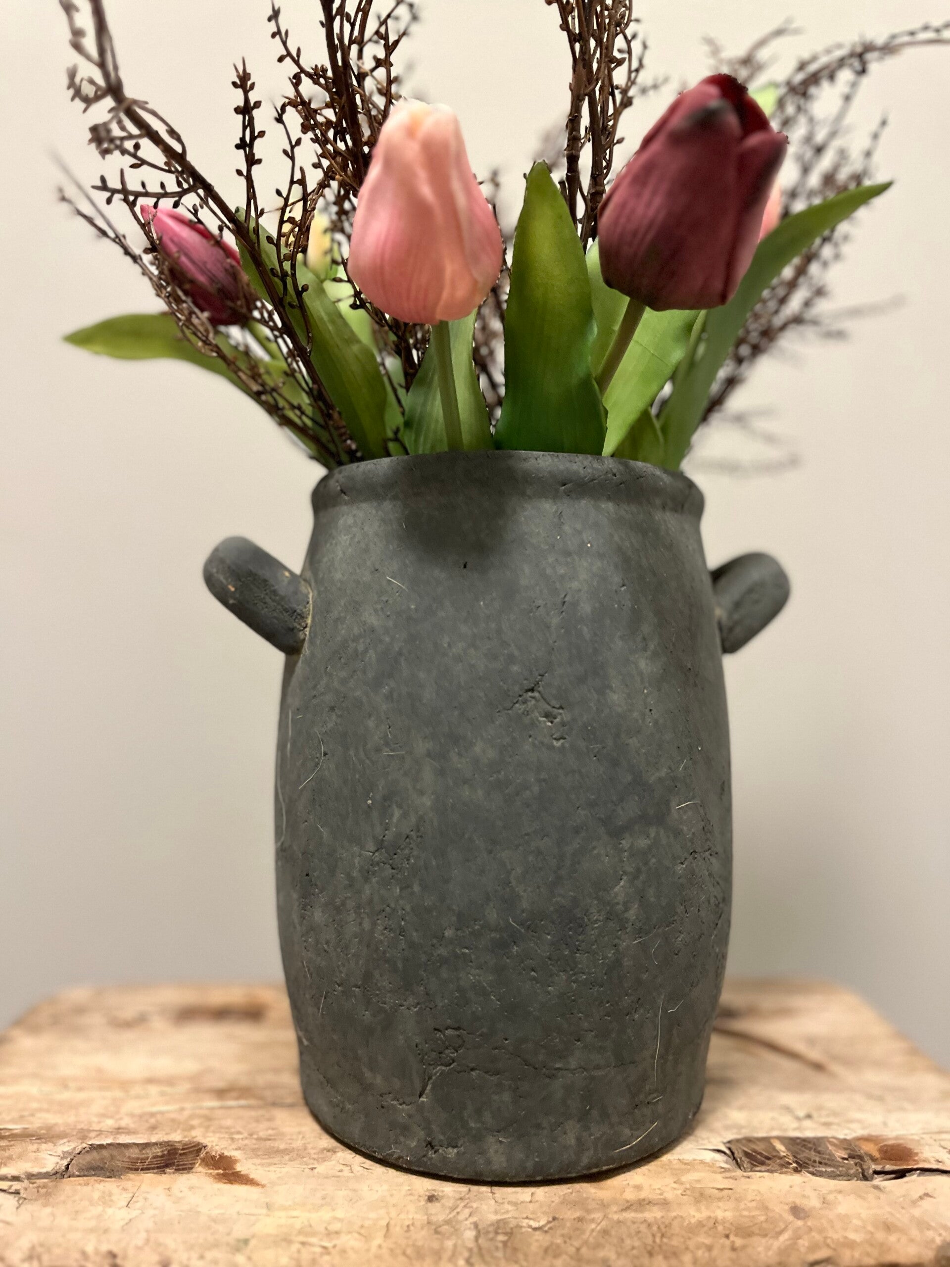 Grijze pot/vaas met 2 oren