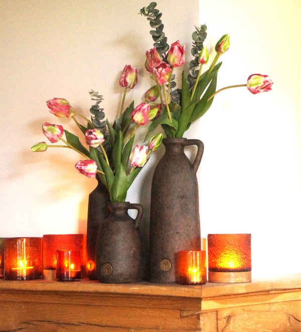Van een stoer waxinelichthouder in kleur tot een tijdloos mooi windlicht; combineer de matte tonen van het brynxz aardewerk met de glans van verschillende tinten glas.