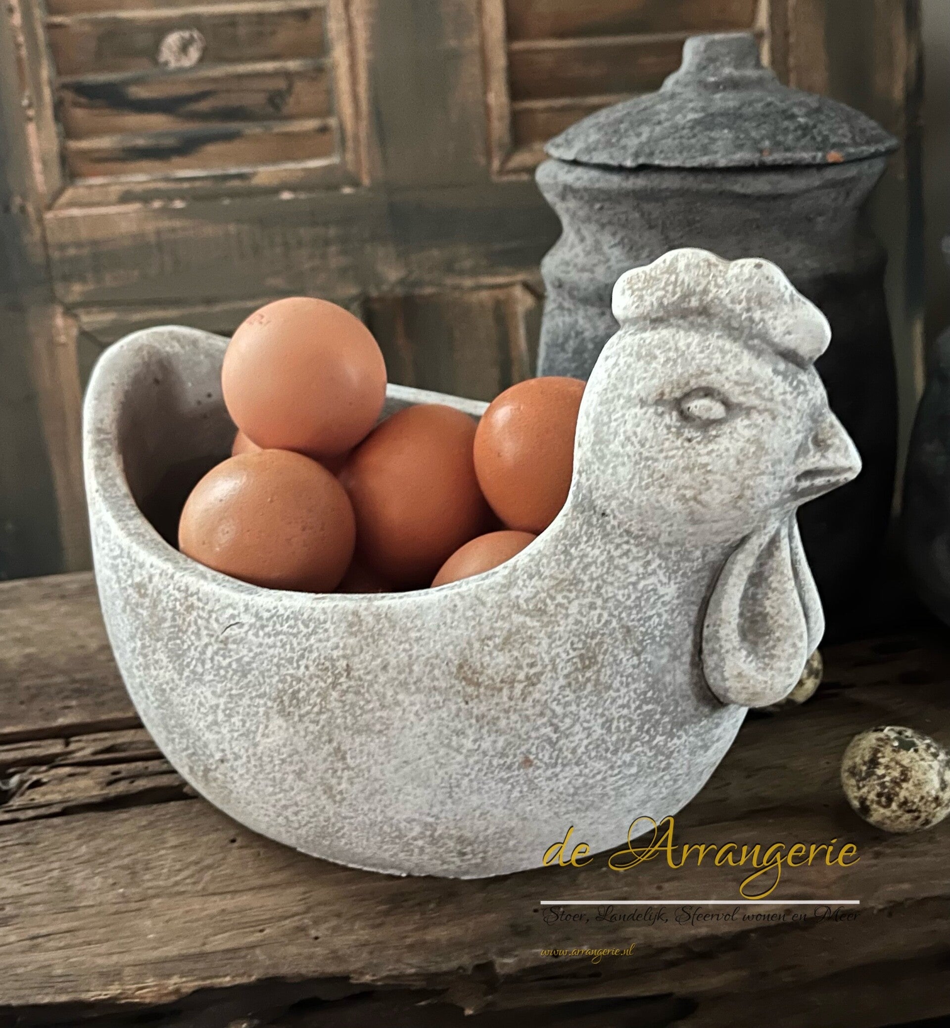 Hoe leuk is deze kip op je aanrecht om je eitjes in te bewaren.
