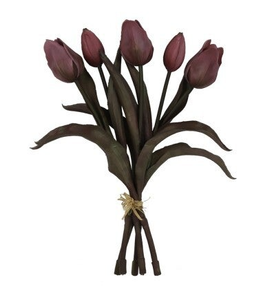 Bosje tulpen, 5 stelen,(donker), 30 cm, donker roze