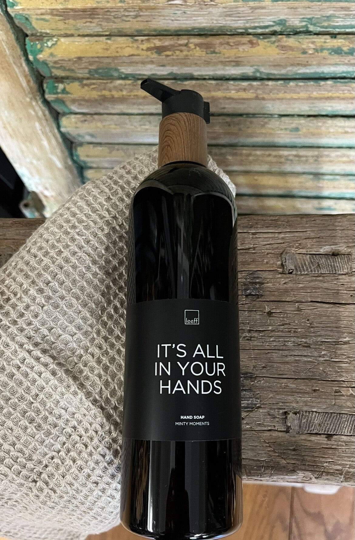 Maak momenten mooi met de woon- en lifestyle accessoires van Leeff. Met deze handzeep wordt handen wassen een feestje. Door de quote "it's all in your hands" is deze handzeep een perfect cadeautje!