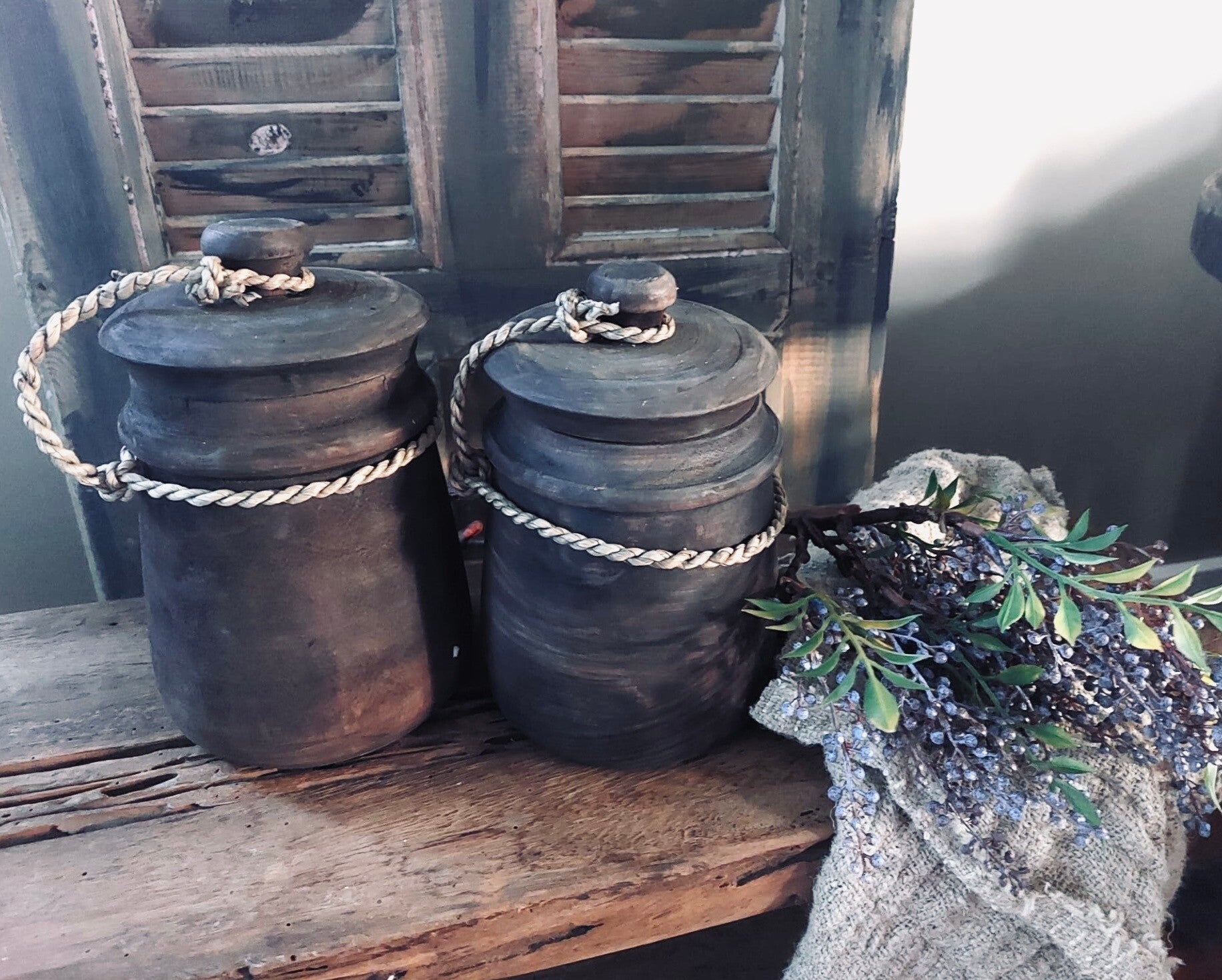 Het deksel zit met robuust touw aan de pot gemaakt