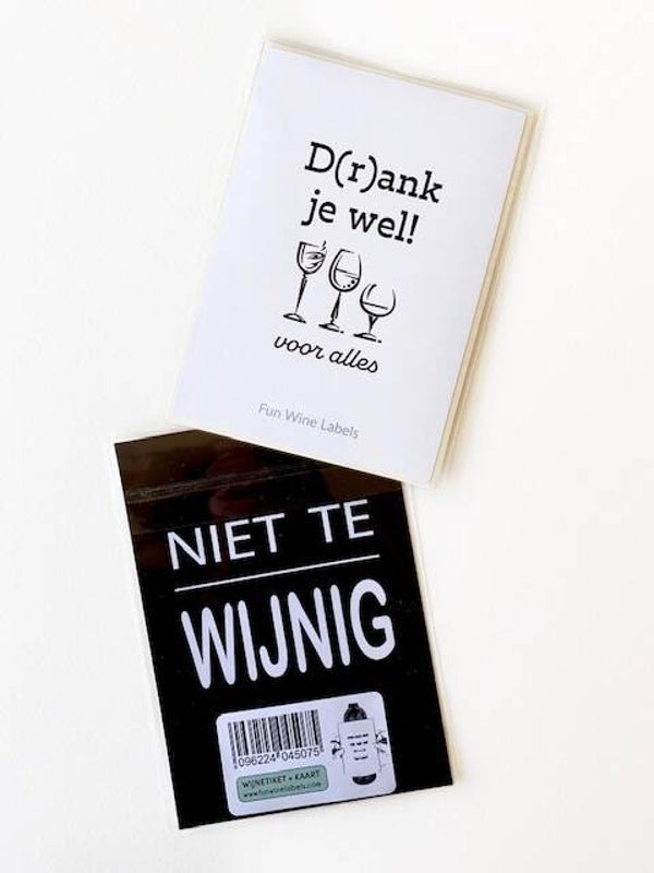 De etiketten zijn verpakt in een transparant, hersluitbaar zakje. In dit zakje zit één wijnetiket inclusief een leuke ansichtkaart. Dit om buigen of beschadiging van het wijnetiket tegen te gaan en een persoonlijke boodschap aan je cadeau toe te voegen.