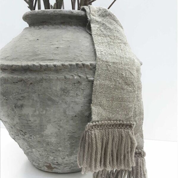 Stoer shabby lint afgewerkt aan de onderzijde met wollen franjes.