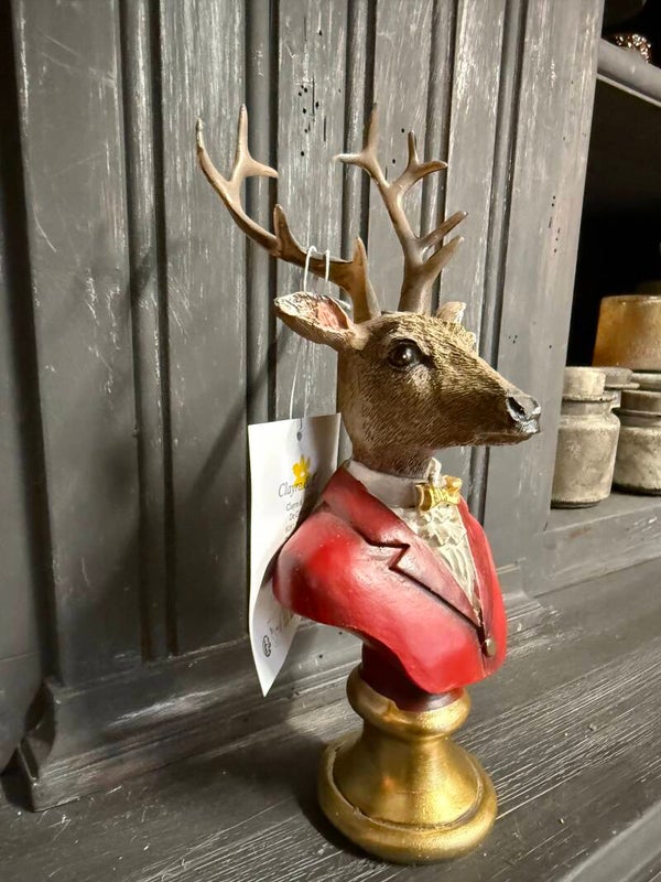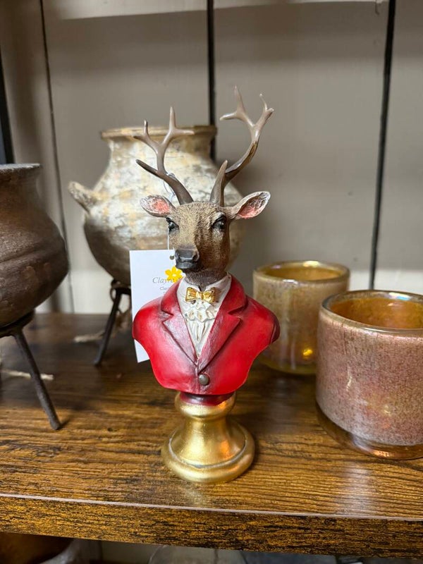 Borstbeeld hertmet rood jasje en goud strikje