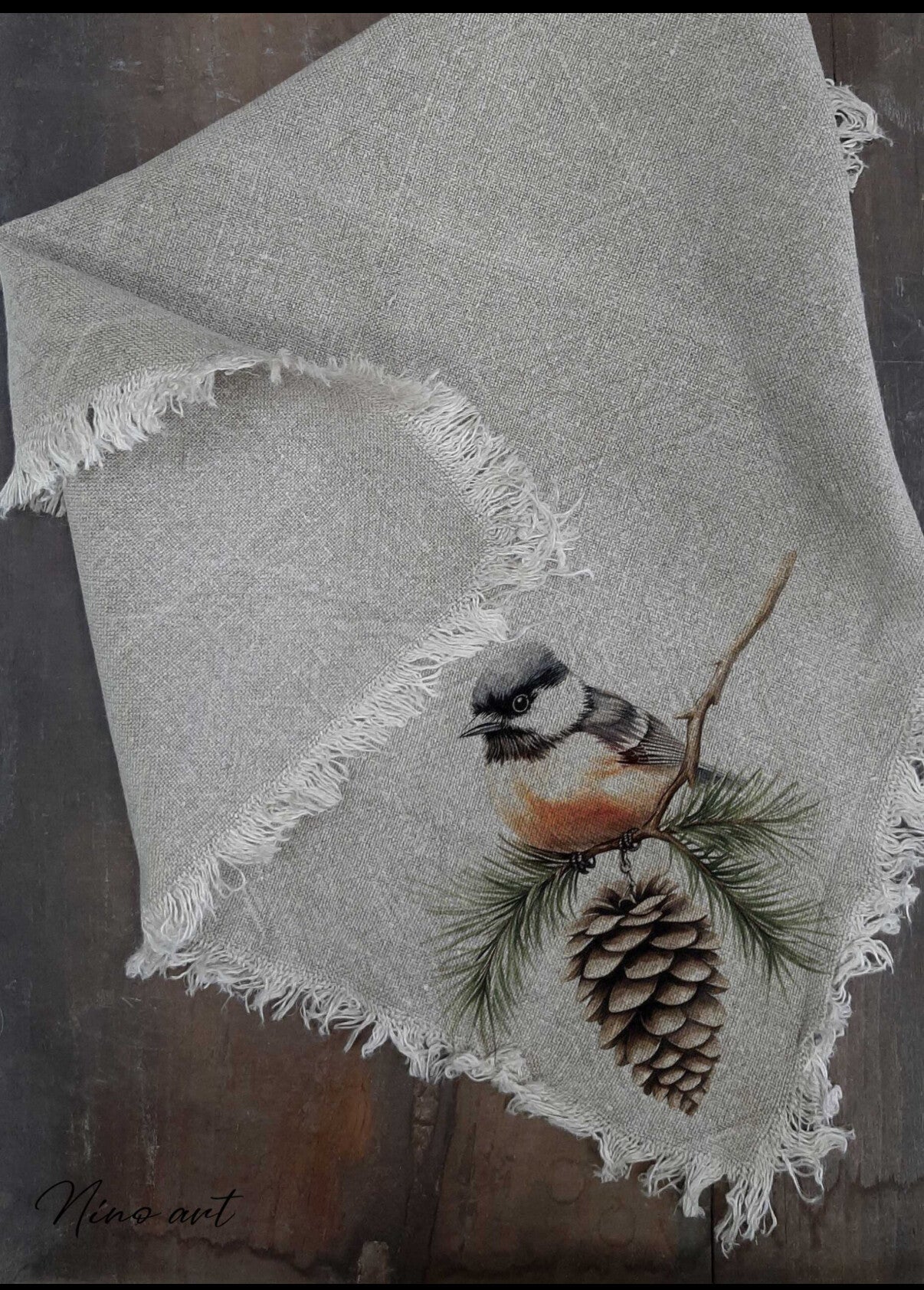 Duidelijk bedrukt op de punt met de afbeelding van een winter roodborstje in kleur