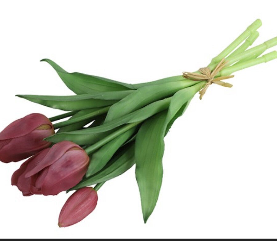 Bosje tulpen, 5 stelen, 30cm, donker oud roze