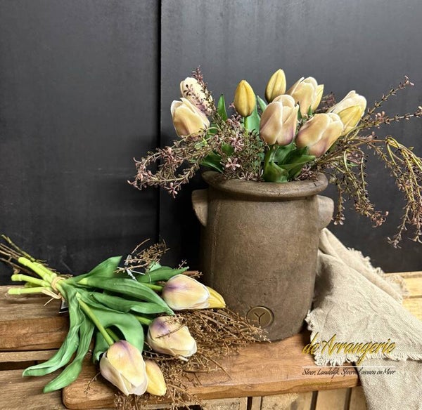 Bosje tulpen, 5 stelen, 30cm, paars creme