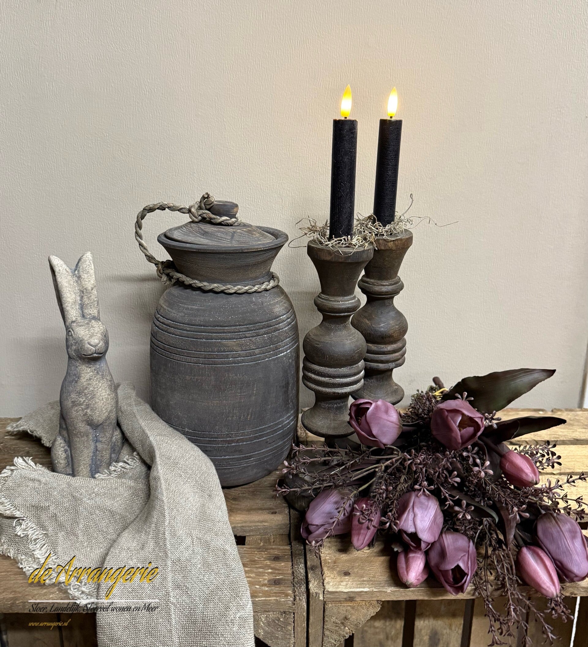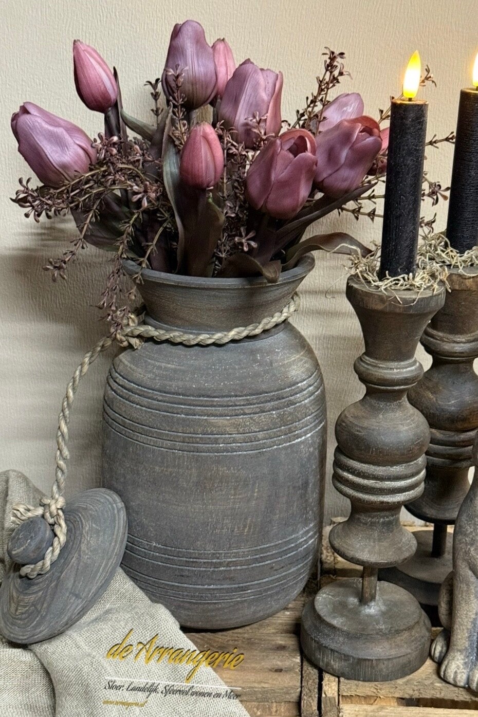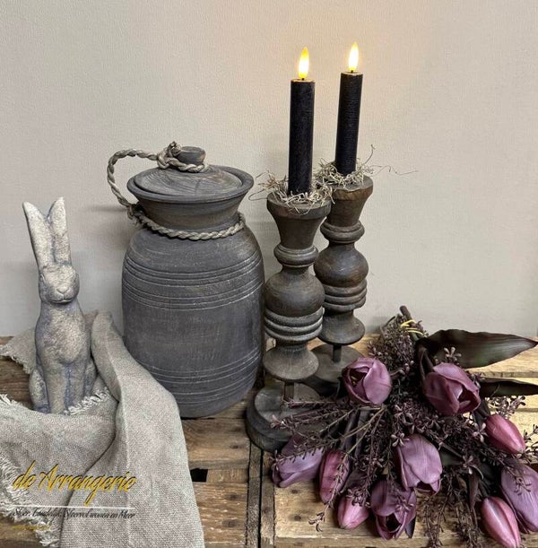 Houten pot met deksel aan touw