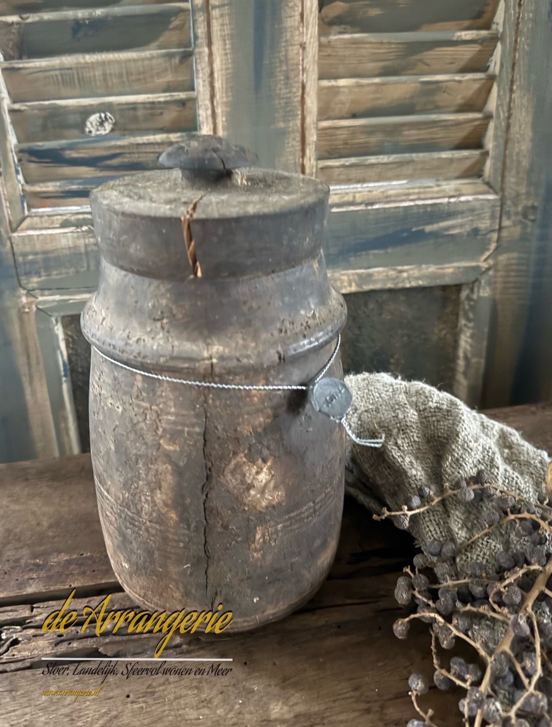 Originele houten Nepalese pot met deksel van HOFFZ Compleet met officieel HOFFZ loodje