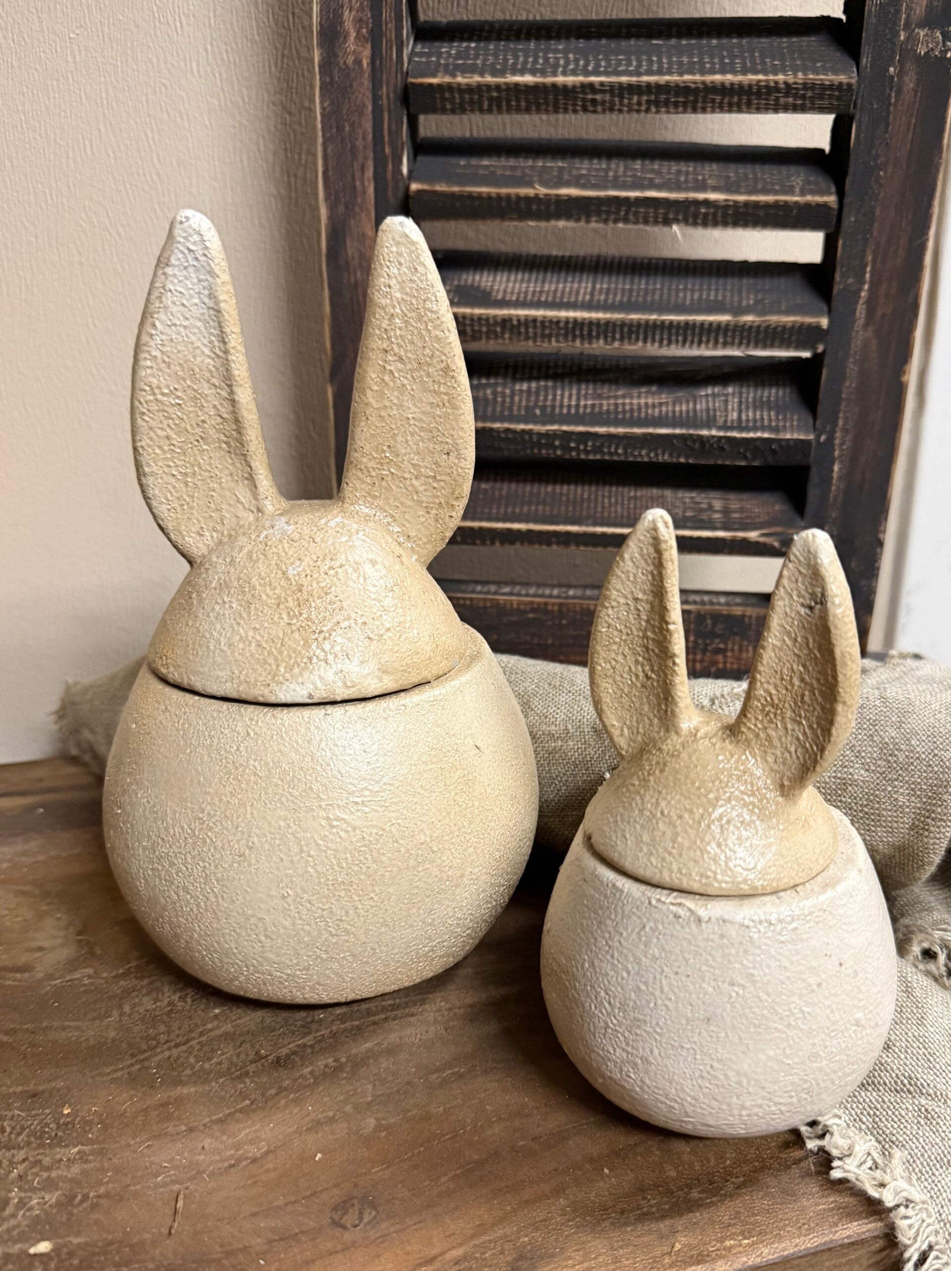 Leuke potjes in crème kleur met haas oren als deksel in 2 maten