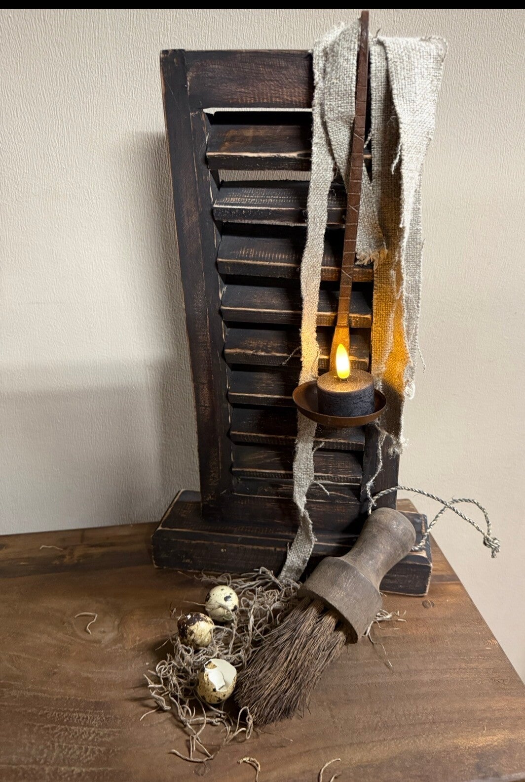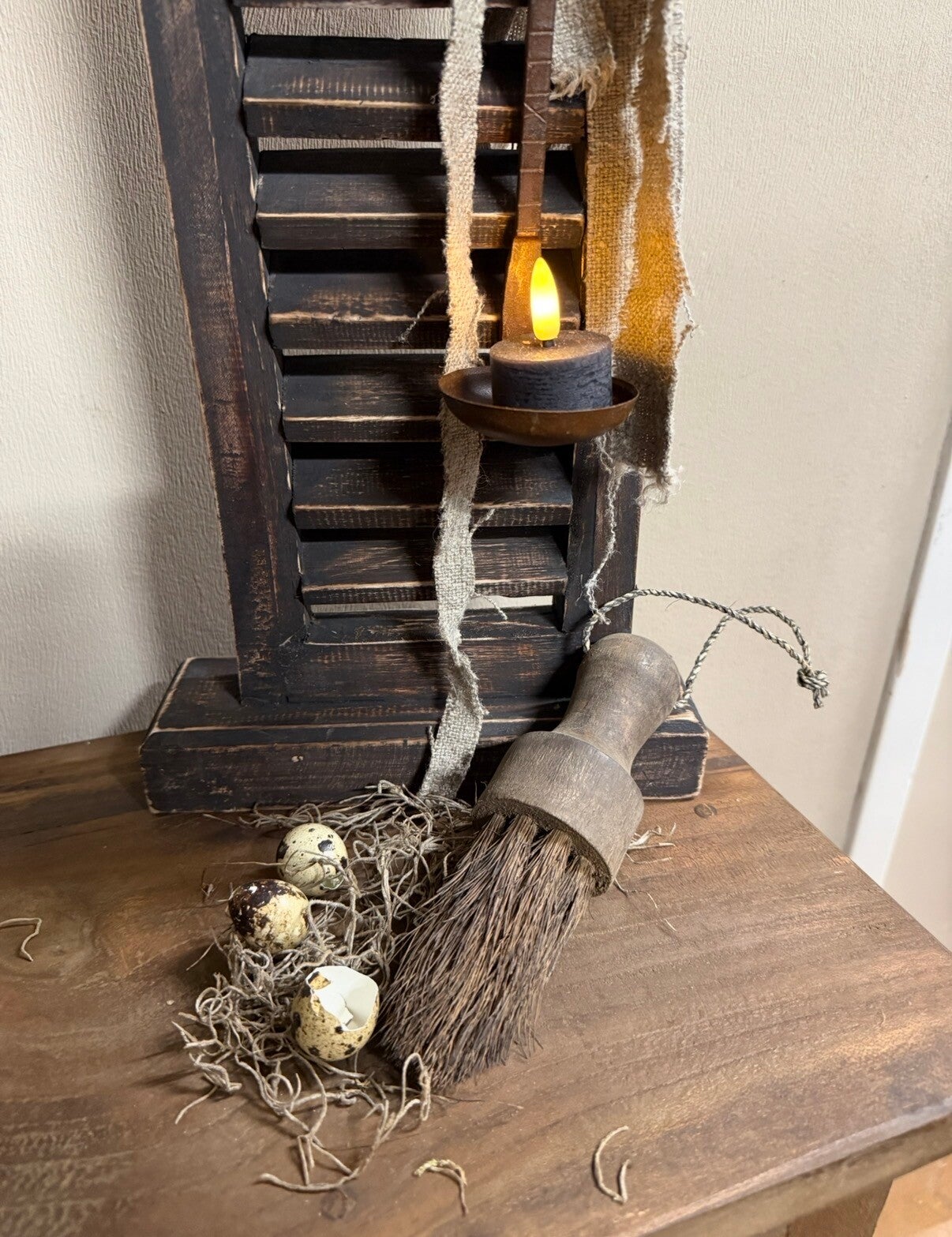 Houten kwast aan stoer touw.