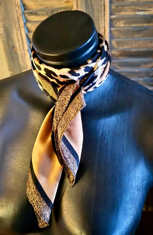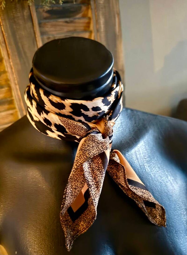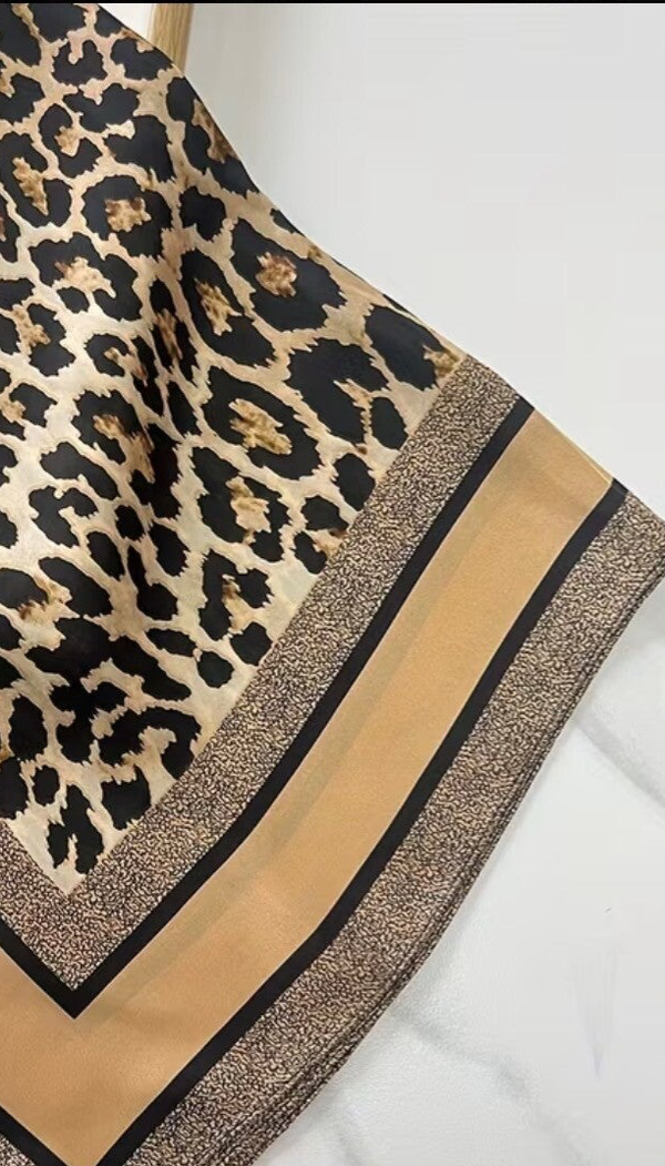 Het sjaaltje heeft een chique panter print in bruin zwart tinten waardoor het makkelijk te combineren is met verschillende outfits.