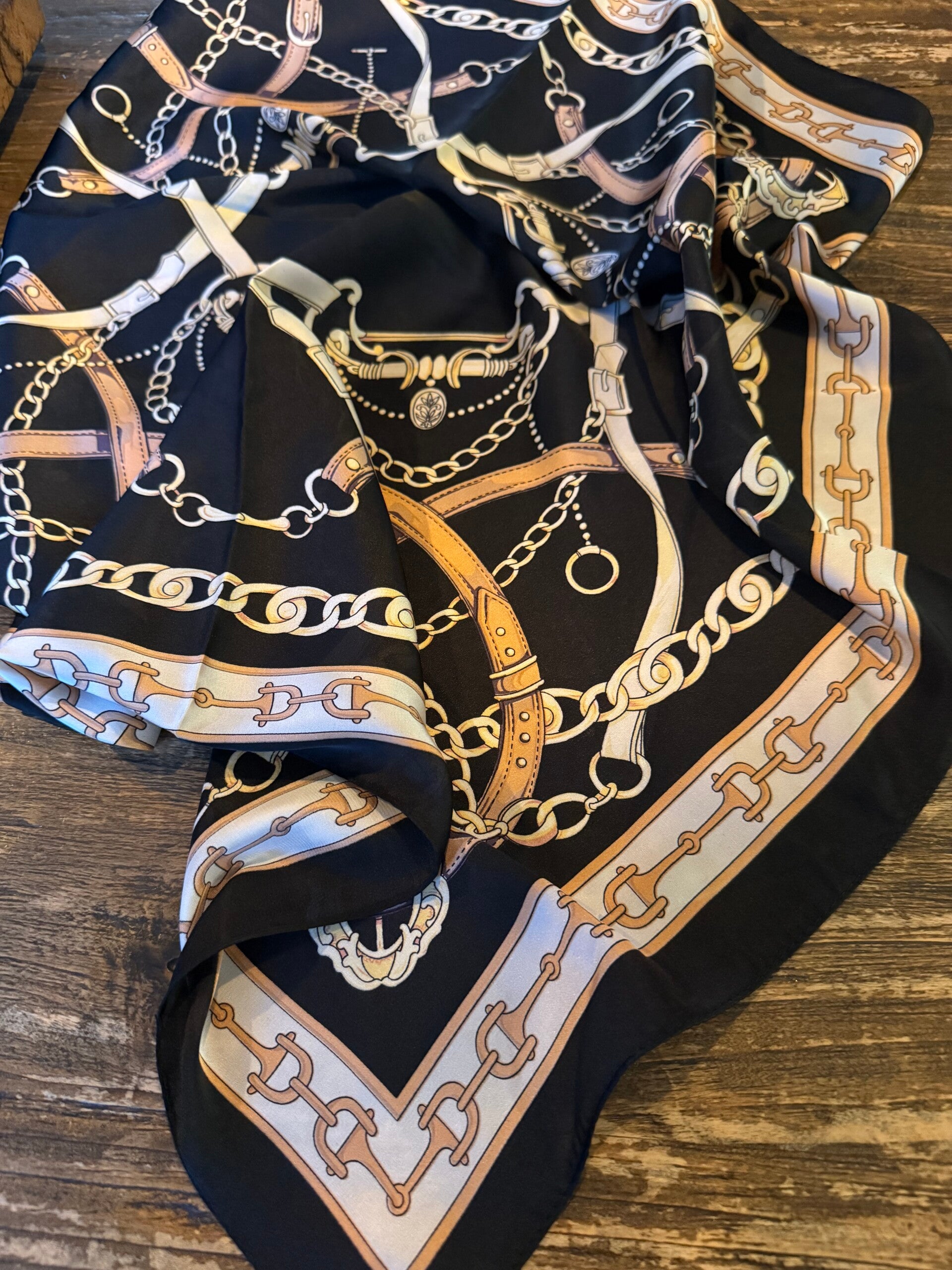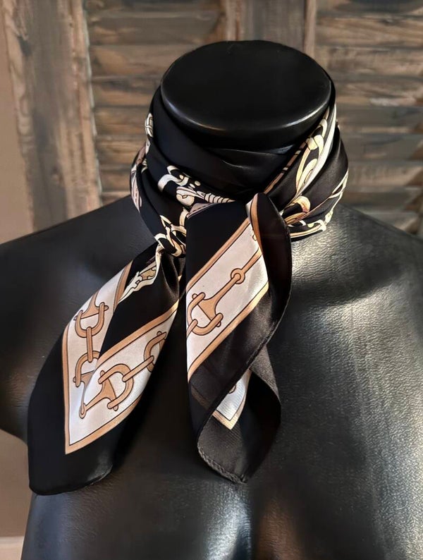 Sjaaltje Hermes print zwart - 70x70cm