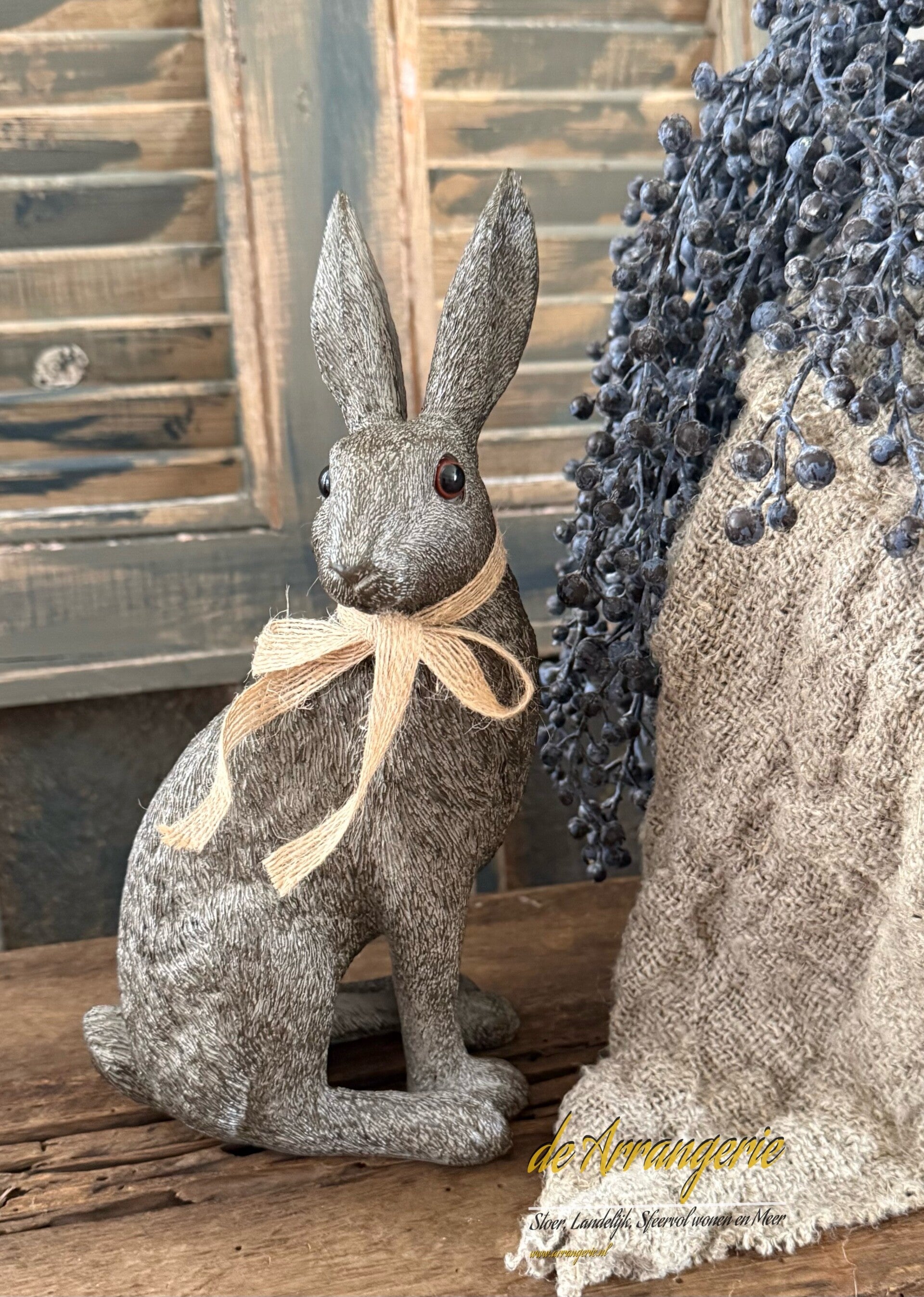 Zittende haas met strik 25cm